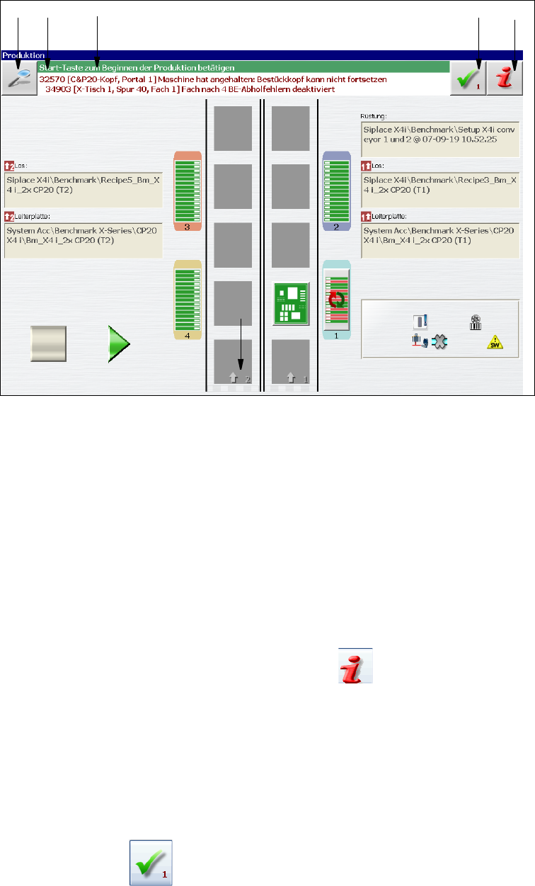 Ábra 5.6 - 1 "Gyártás" nézet riasztás üzenettel (a SIPLACEX4i példáján)