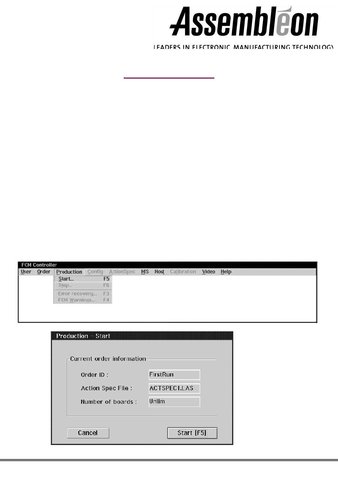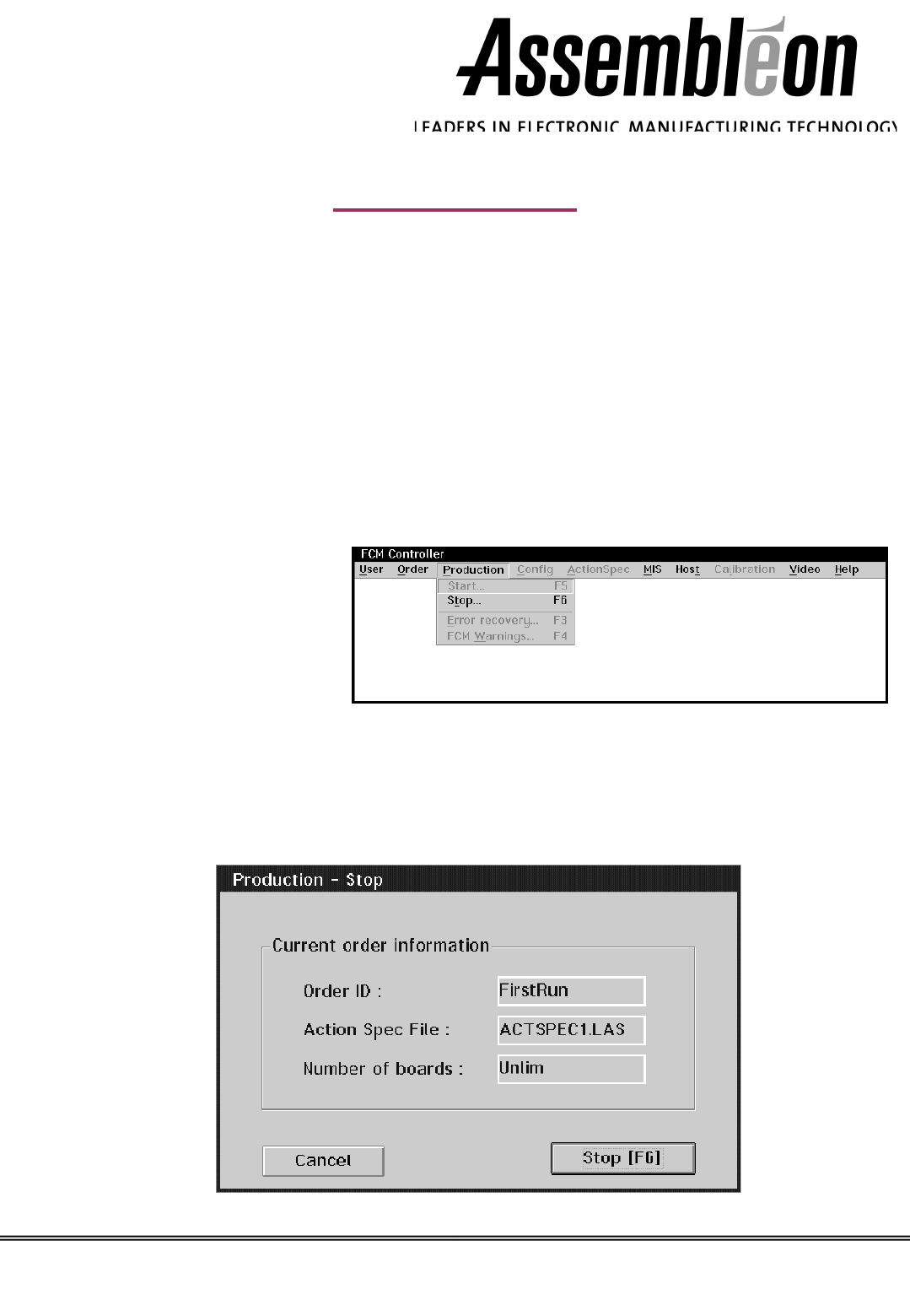 – 按下<F6>, “Production-Stop”
