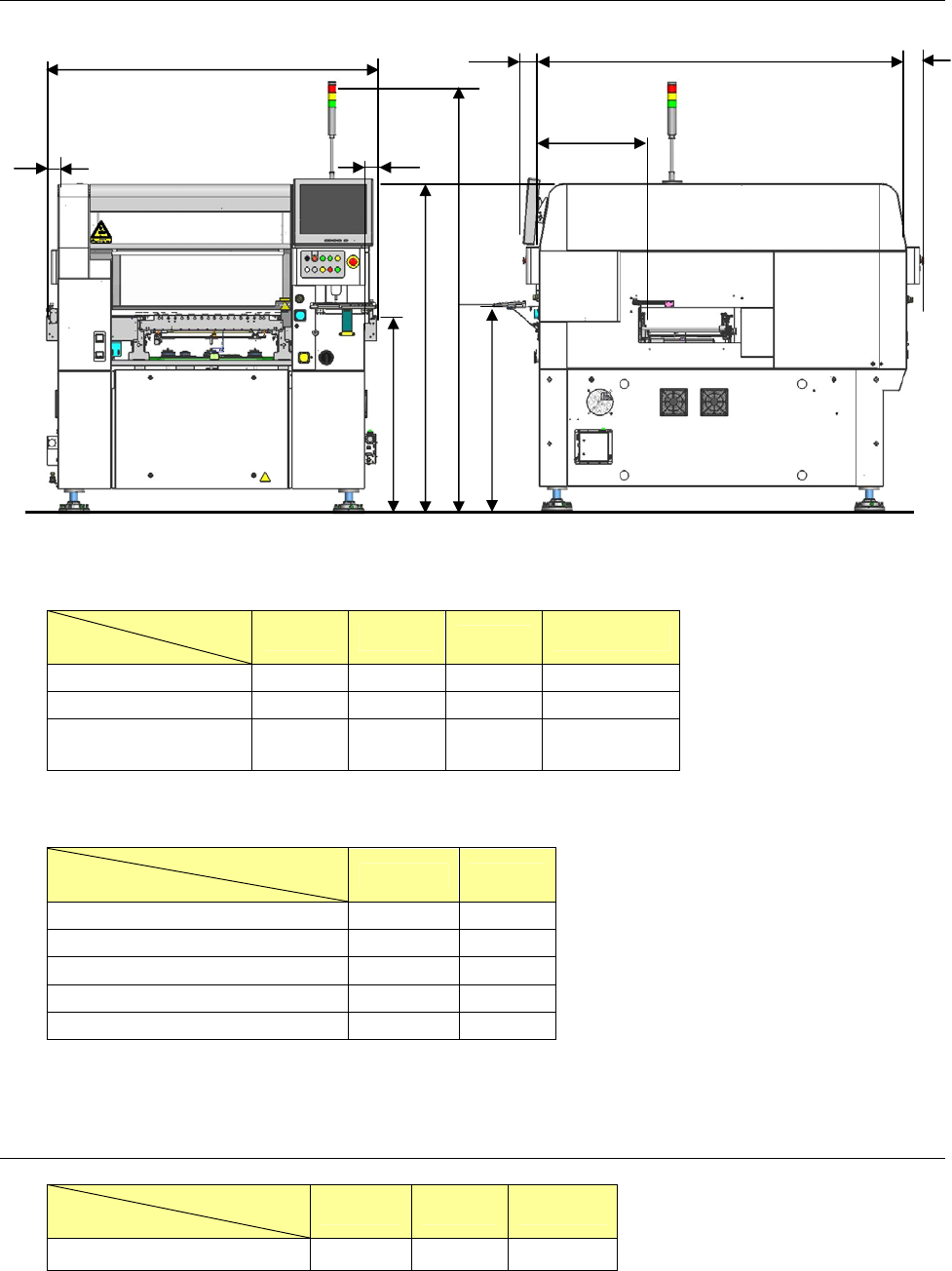 10 4-2-2. 外形尺寸 ( 不包括最大突起物 ) 单位: mm 基板规格 尺寸 M 基板 L 基板 L-Wide XL 基板 A (传送长度) 1,500 1,500 1,800 2,131 C ( 厚 度:不 含 LCD ) 1,580 1,690 1,690 1,890 H (传出量) 50 50 200 228.6 ( L ) 222.4(R) ※上述尺寸的公差为± 5mm 。 单位: mm 传送高度 尺寸 900mm 95…