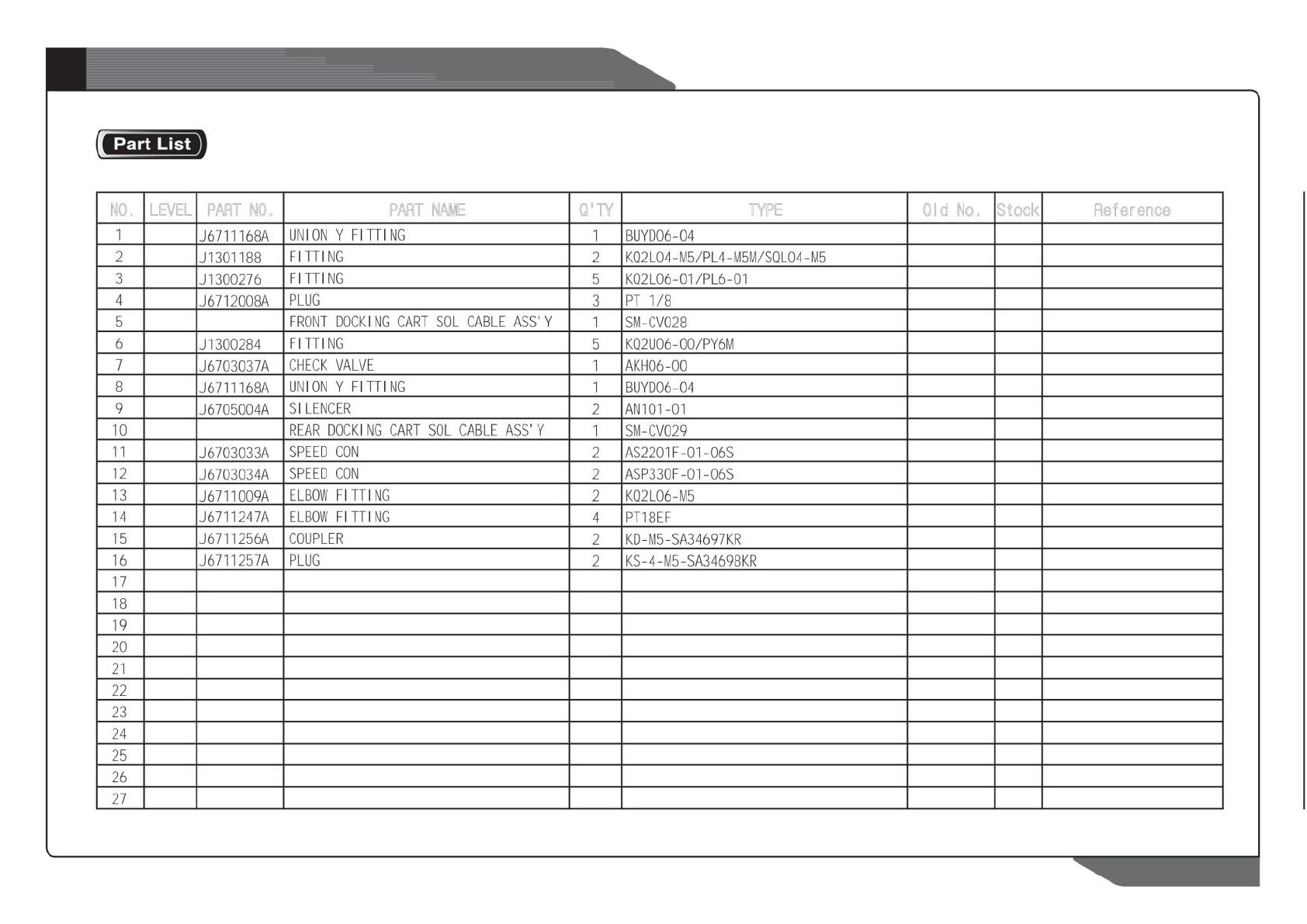 NO. LEVEL PART NO. PART NAME Q'TY TYPE Old No. Stock Reference