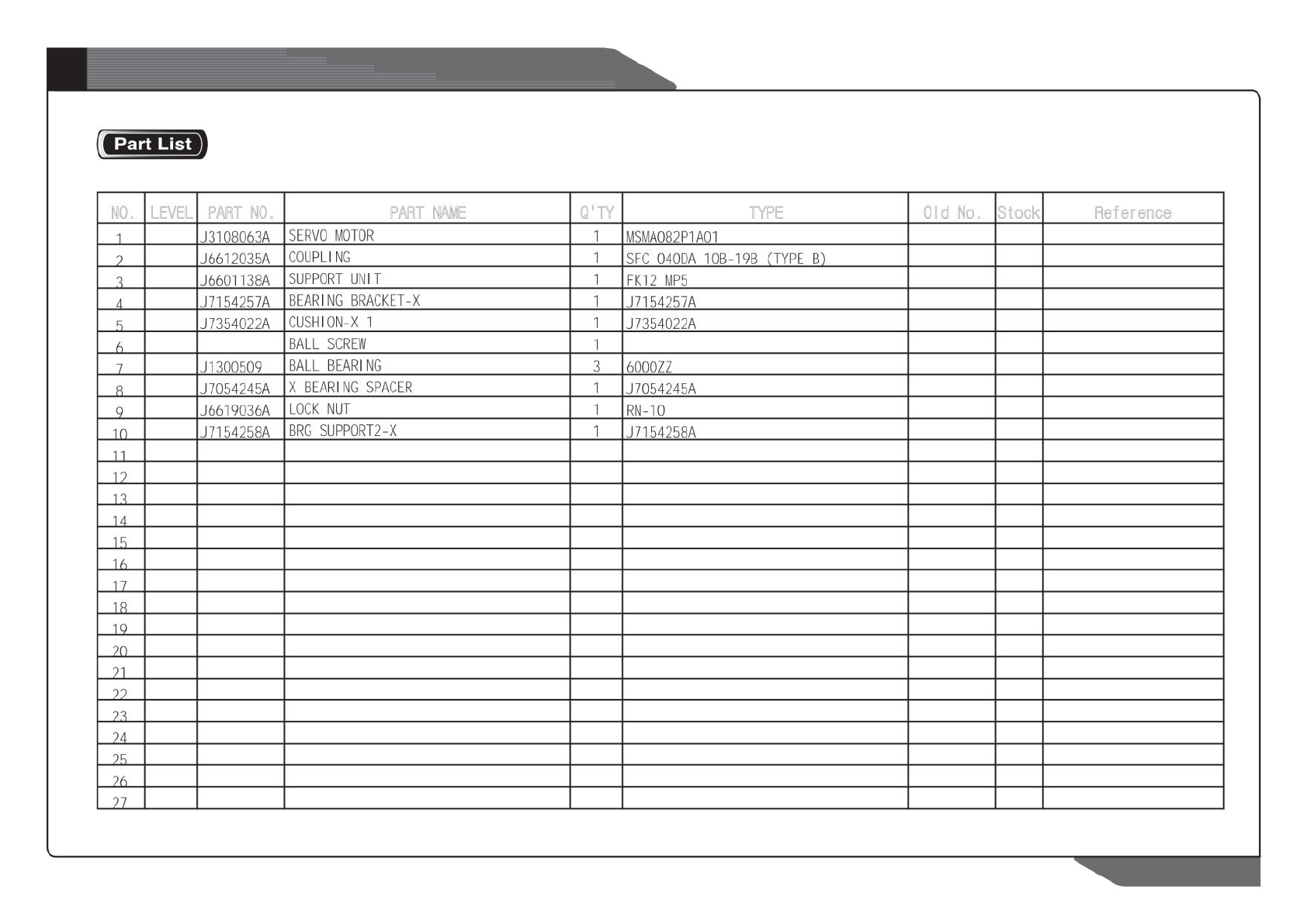 NO. LEVEL PART NO. PART NAME Q'TY TYPE Old No. Stock Reference