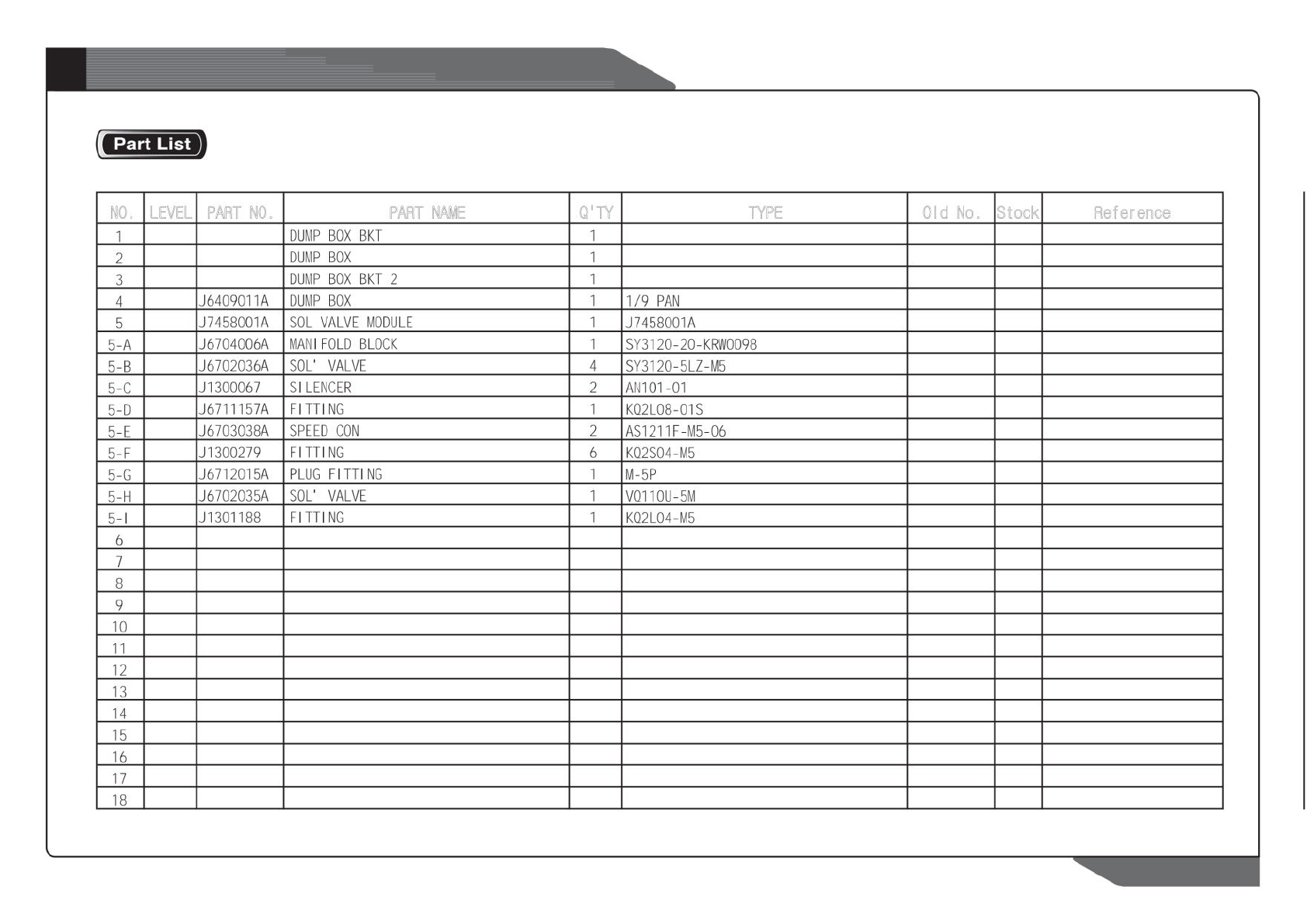 NO. LEVEL PART NO. PART NAME Q'TY TYPE Old No. Stock Reference