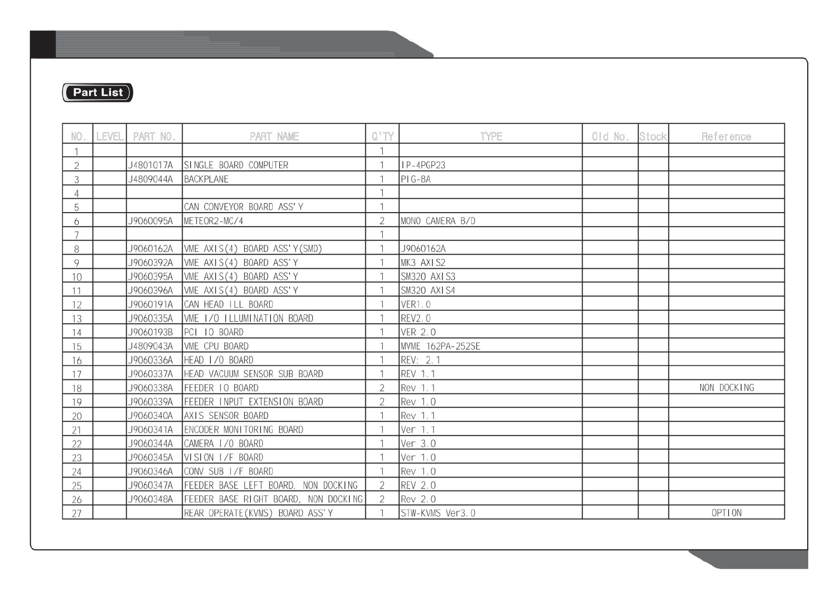 NO. LEVEL PART NO. PART NAME Q'TY TYPE Old No. Stock Reference