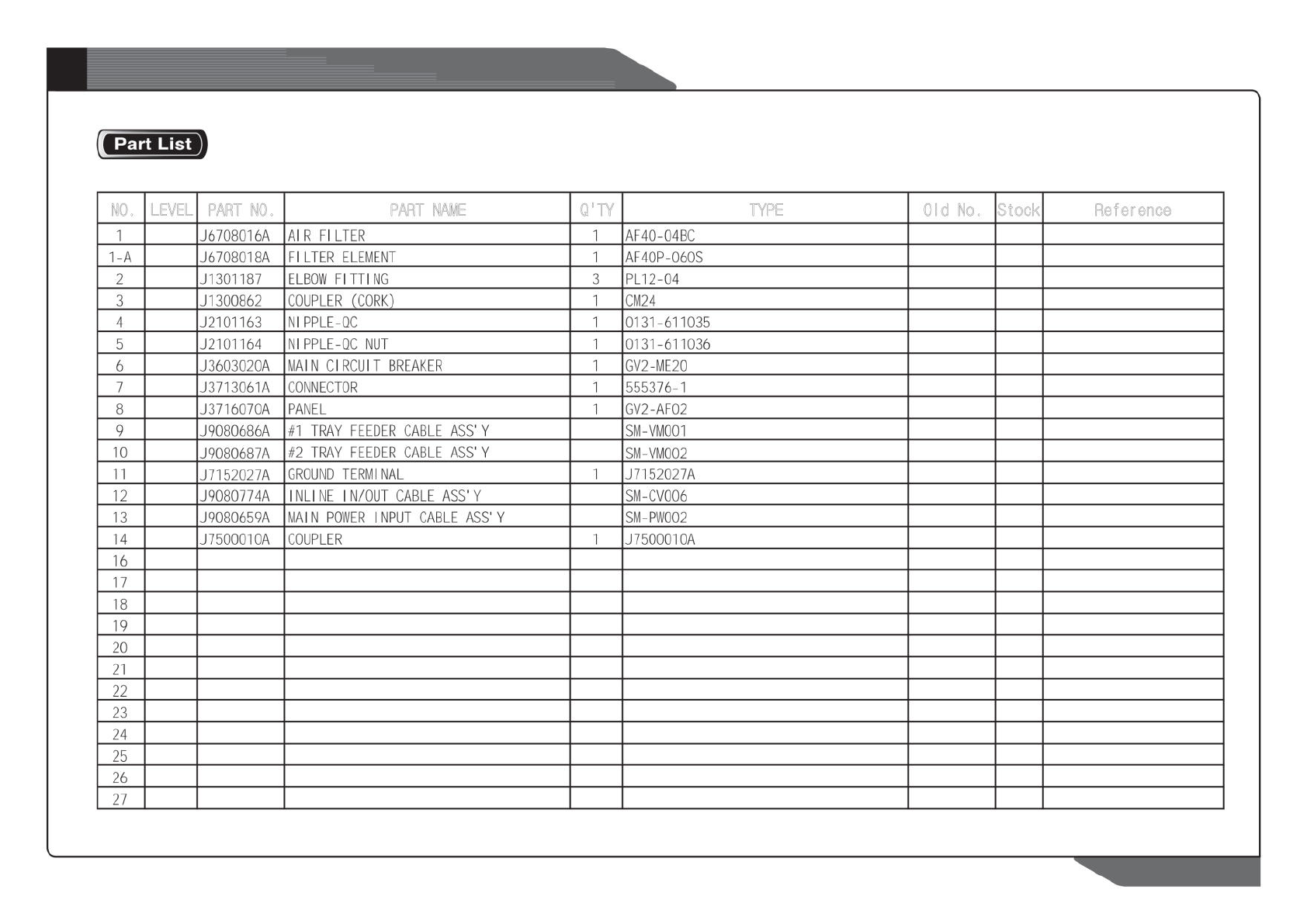 NO. LEVEL PART NO. PART NAME Q'TY TYPE Old No. Stock Reference