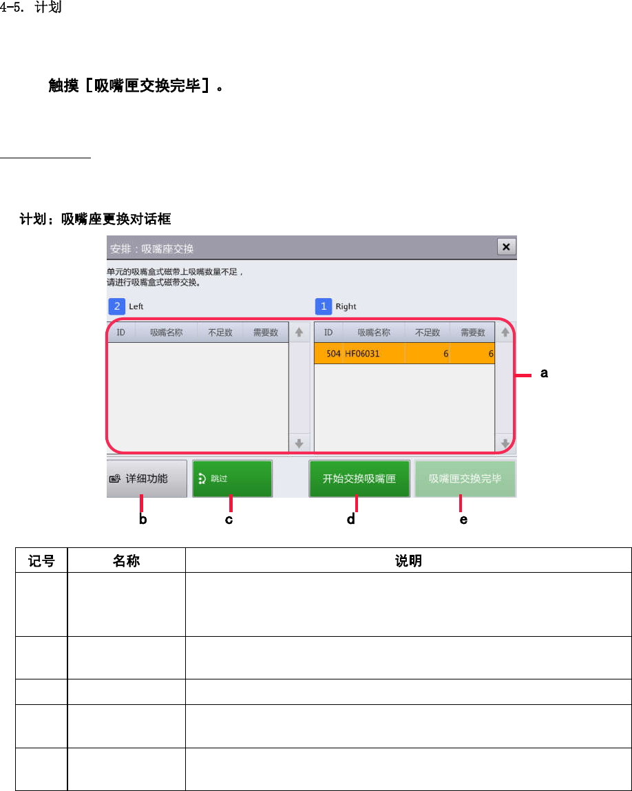 (a) 吸嘴列表 列表显示左右装置在切换机种后所需的吸嘴个数。
