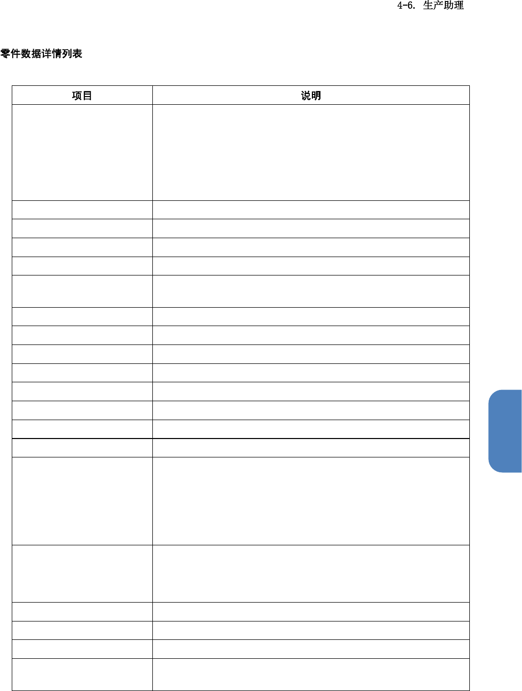 [NC 资料/零件资料明细]对话框的零件数据详情列表中显示的项目如下所示。