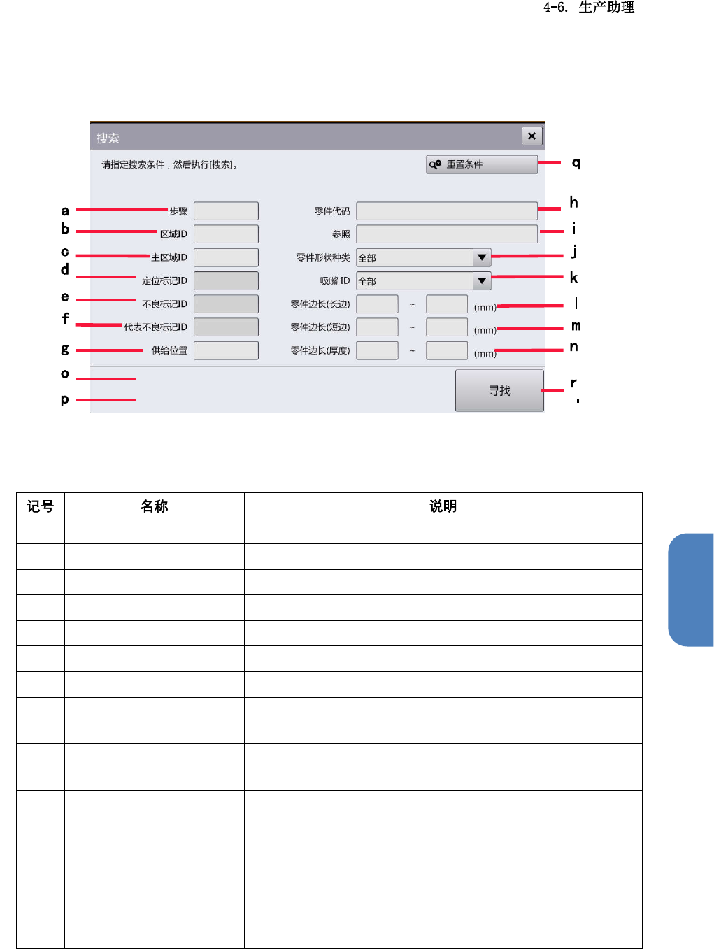 (h) 零件代码 指定要搜索的步骤信息中零件代码所含的部分字符串。