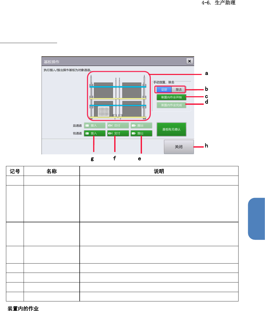(b) 设定/除去 用手放置或去除基板时,在触摸[装置内作业开始]前选择。