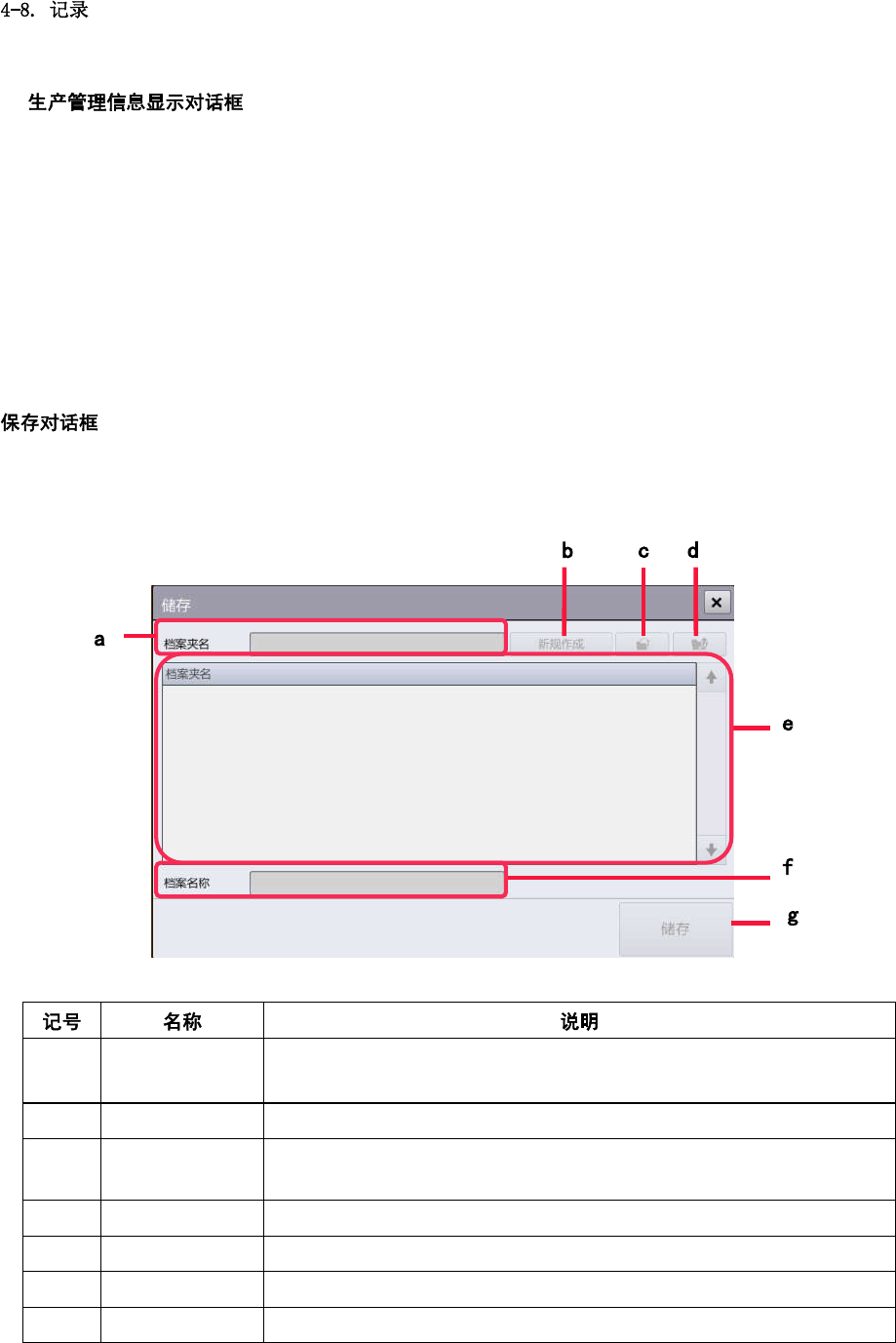 (g) 储存 按指定的文件名将生产管理信息保存到指定的文件夹中。