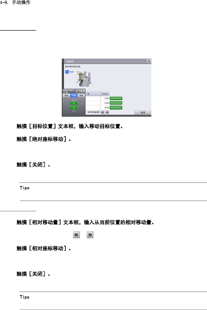 Z 轴将从当前位置按[相对移动量]中指定的距离移动。