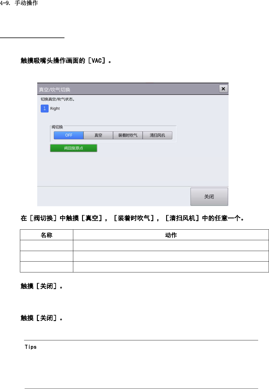 装着时吹气 将吸嘴中的气体变为安装吹风(安装零件时吹风)。