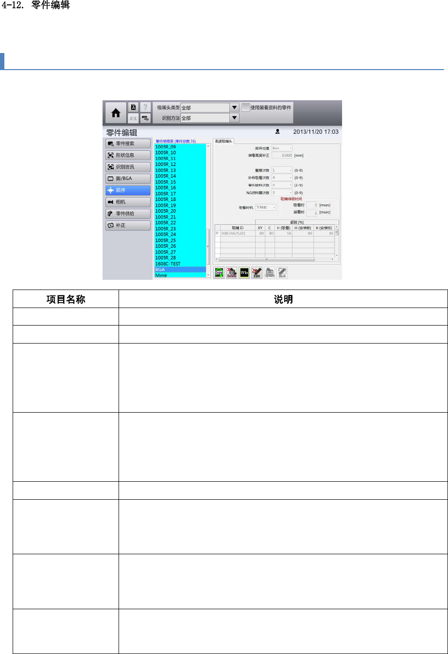 4-12-7. 零件的吸附,安装顺序画面