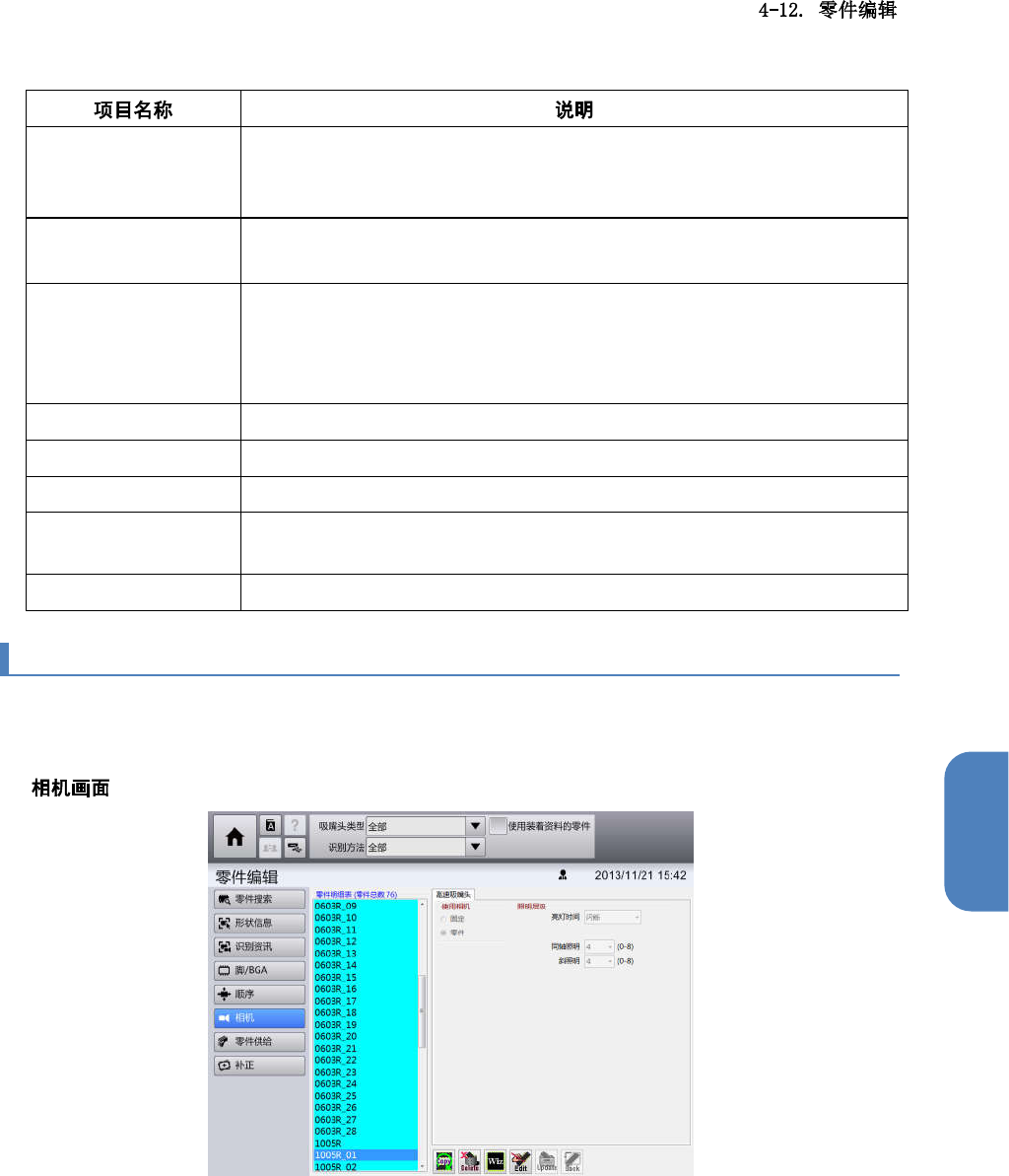 4-12-8. 零件的识别相机信息画面