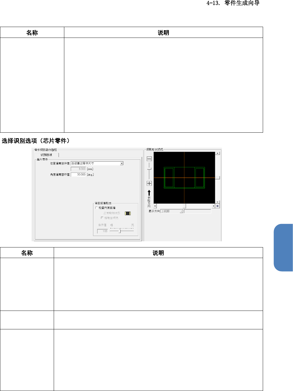 位置偏离容许值 识别零件时,从下拉列表中选择在哪个范围内进行识别。