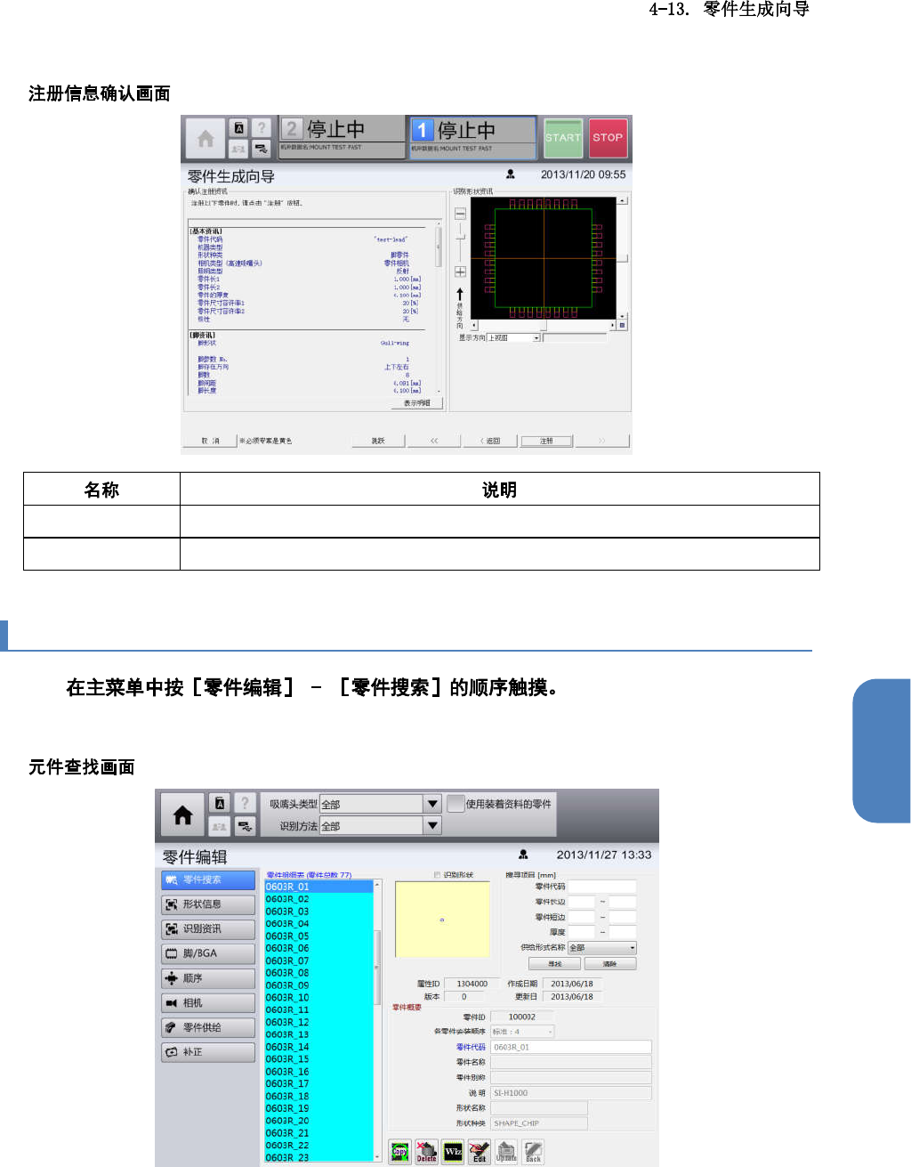 第 4 章 操作篇 零件形状 注册零件的形状 。 • 资料项目:显示 可更改 零件长度的项目。 • 变更前:显示更 改零件 长度前的值。 • 变更后:显示更改零件 长度后的值( 输入值)。 • 单位: m m • 全部选择 " 变更前 " :使用更改前的值作为 所有零件形状 的设定值。 • 全部选择 " 变 更后 " :使用更改后的值 作为所有零件 形状的设定值 。 顺序 注册序列的设定 值。 •…