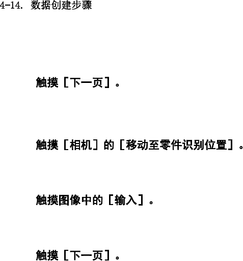 第 4 章 操作篇 13 显示图像导入画 面。 14 吸附的零件将移 动到指 定的相机位置。 15 将导入零件的图 像。 16 显示识别数据编 辑画面 。 264