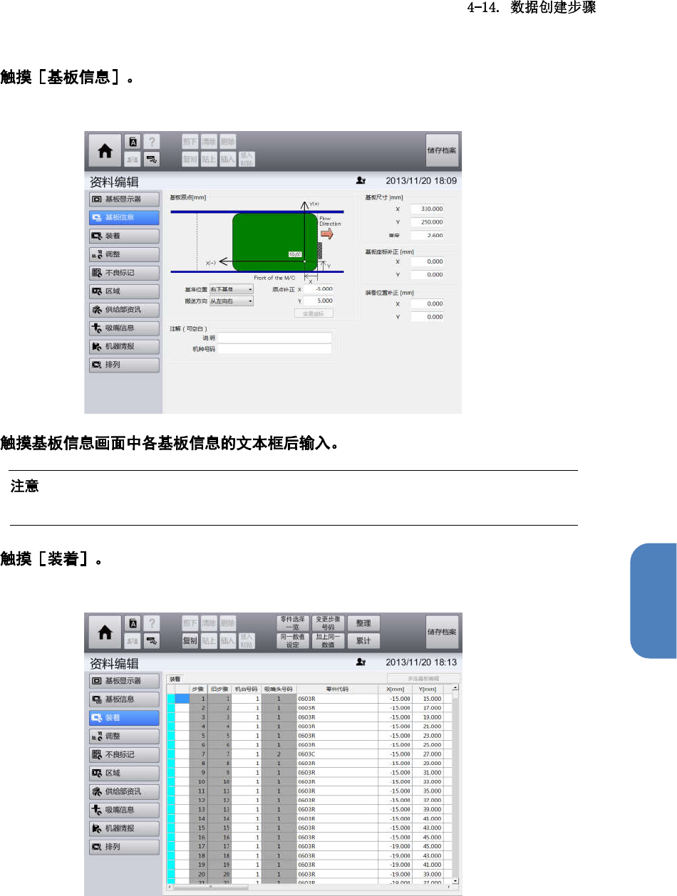在输入基板信息前,出厂时已预先输入基板信息,请注意不要输错。