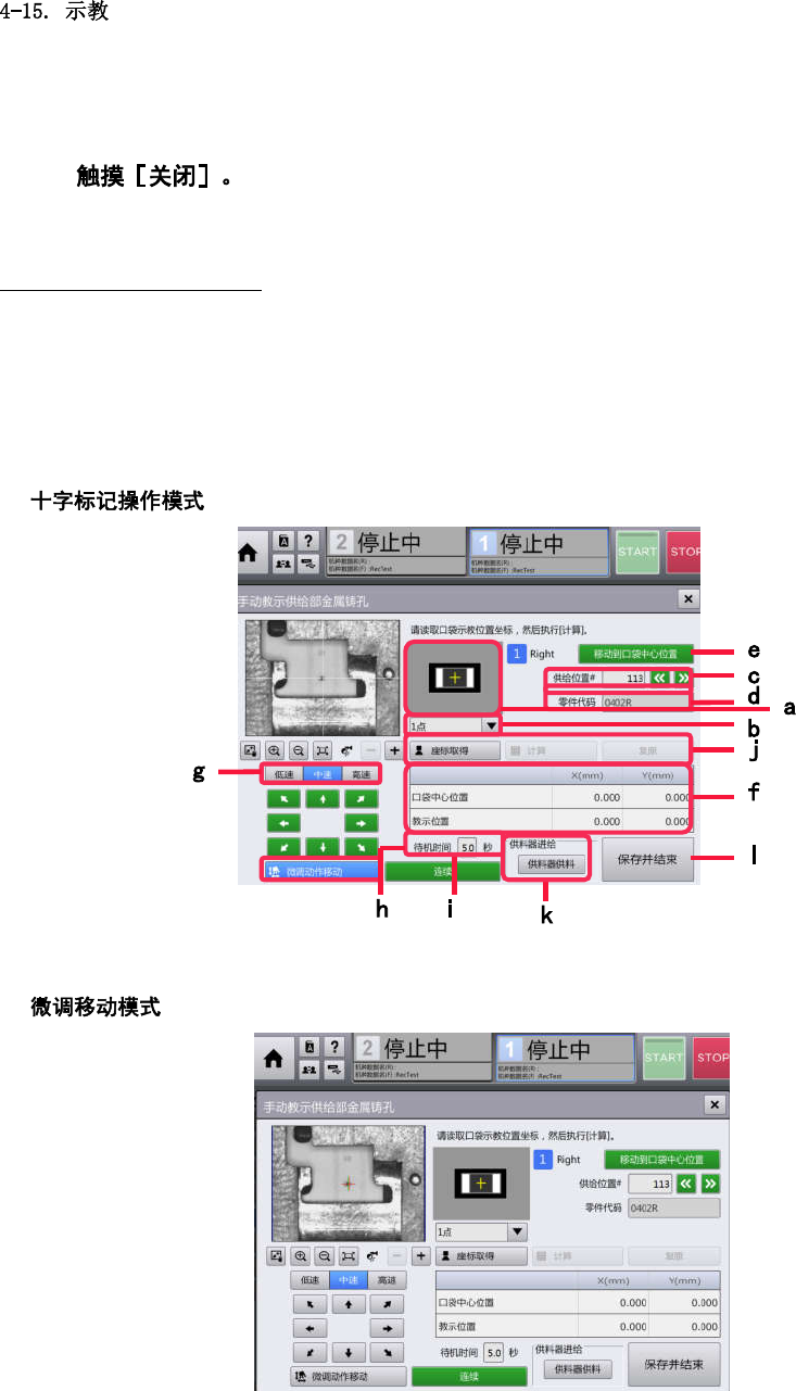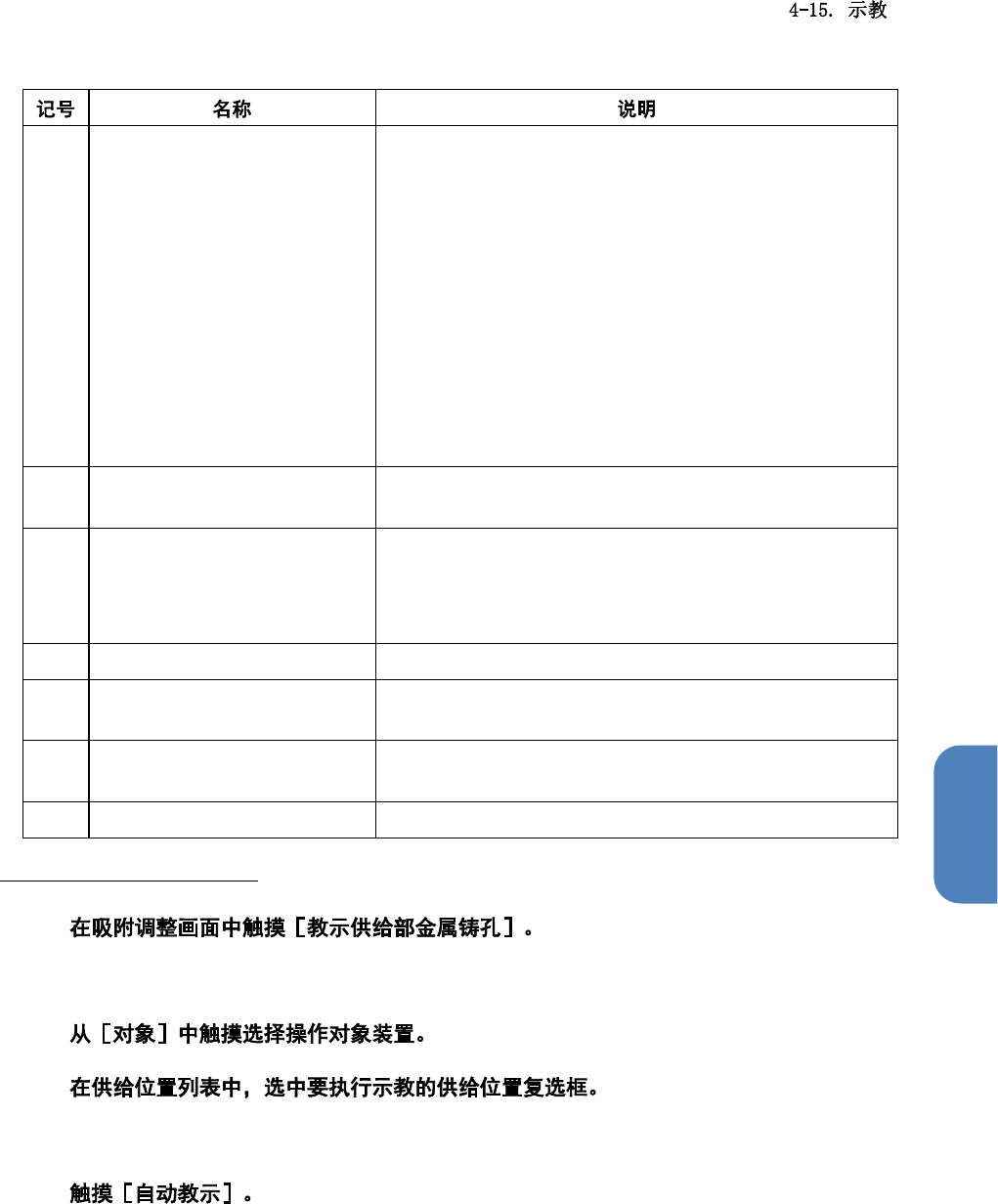 关于手动示教的详情,请参阅下述的“手动示教供给部金属铸孔”。