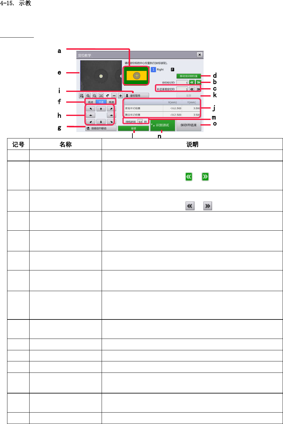 (j) 坐标值 显示示教处理前后标记位置的坐标。