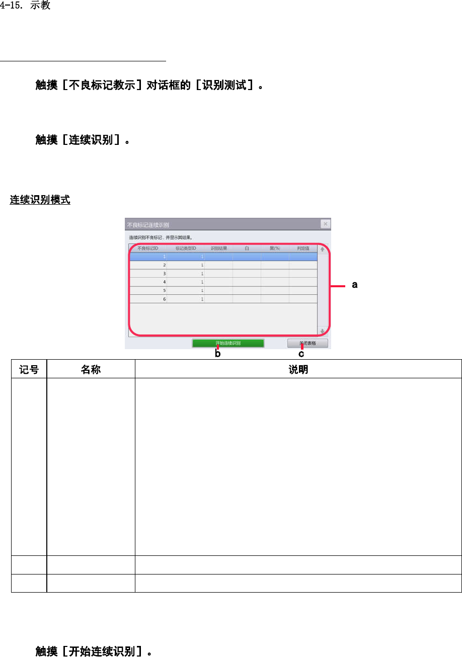 (b) 开始连续识别 连续执行连续识别结果列表中显示的不良标记识别。