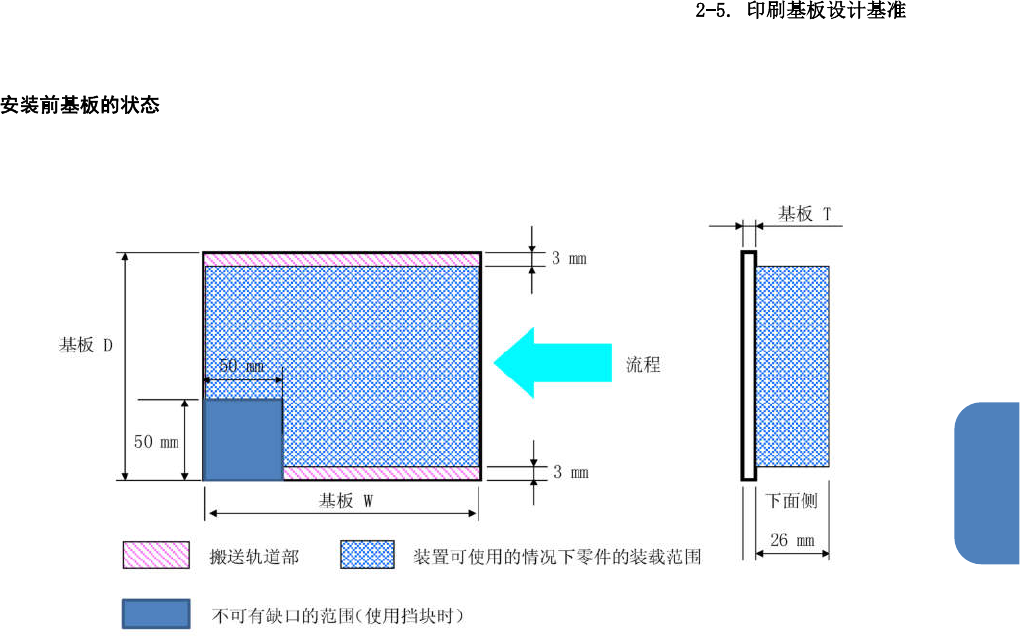 第 2 章 系统概要 如下图所示,从 印刷基 板两端向内 3 mm 的范围内 不可安装元件 。此外,安装 元件的最大高度为 26 mm 。 19 2