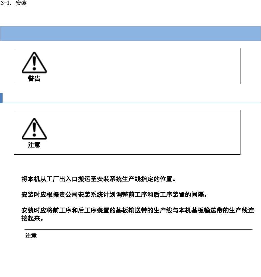 请将本机搬送至安装系统生产线的指定位置,正确配合前工序和后工序的位置,做好安装准备。