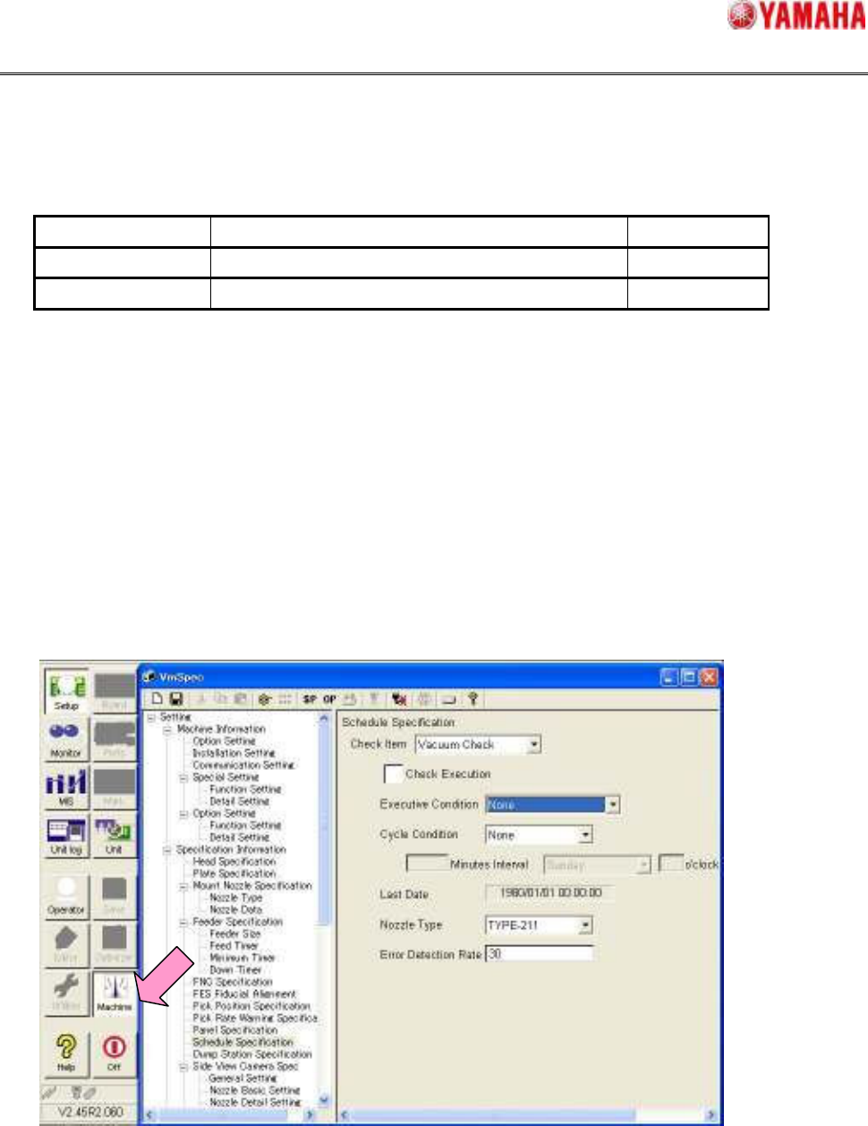 SMT Software Engineering Group IMOperationsYAMAHAMOTORCO.,LTD. MDOC-SOF T50036-001 1/4 Chan ges of sche dule s pecification (spec) se tting