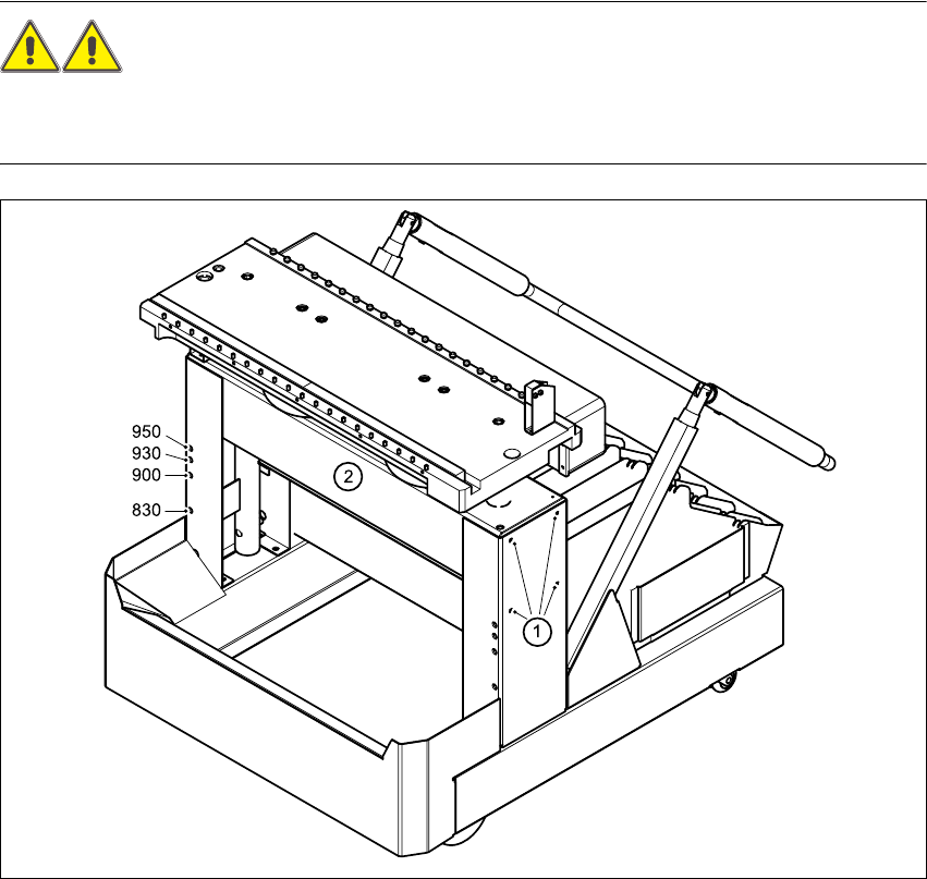 Nehmen Sie alle Förderer von der Tischplatte, bevor Sie die Tischhöhe des BE-Wagens ändern.
