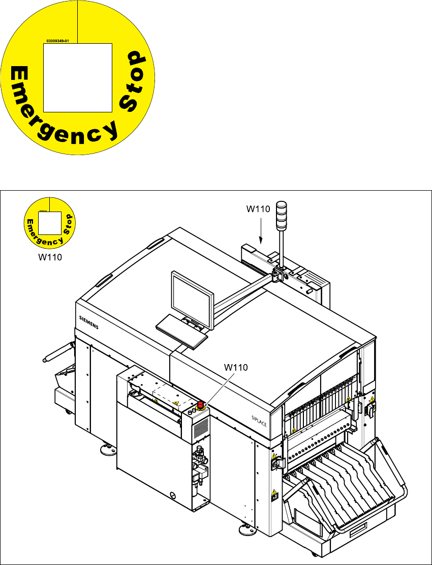 2.2.5 Warnschild W110 an den NOT-HALT-Tastern