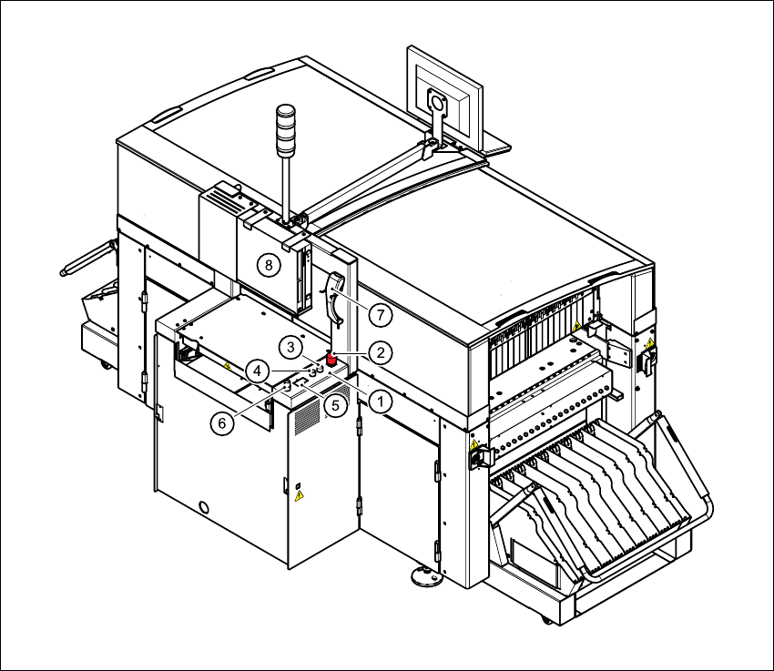 Mit diesem Taster halten Sie den Bestückbetrieb des Automaten an.