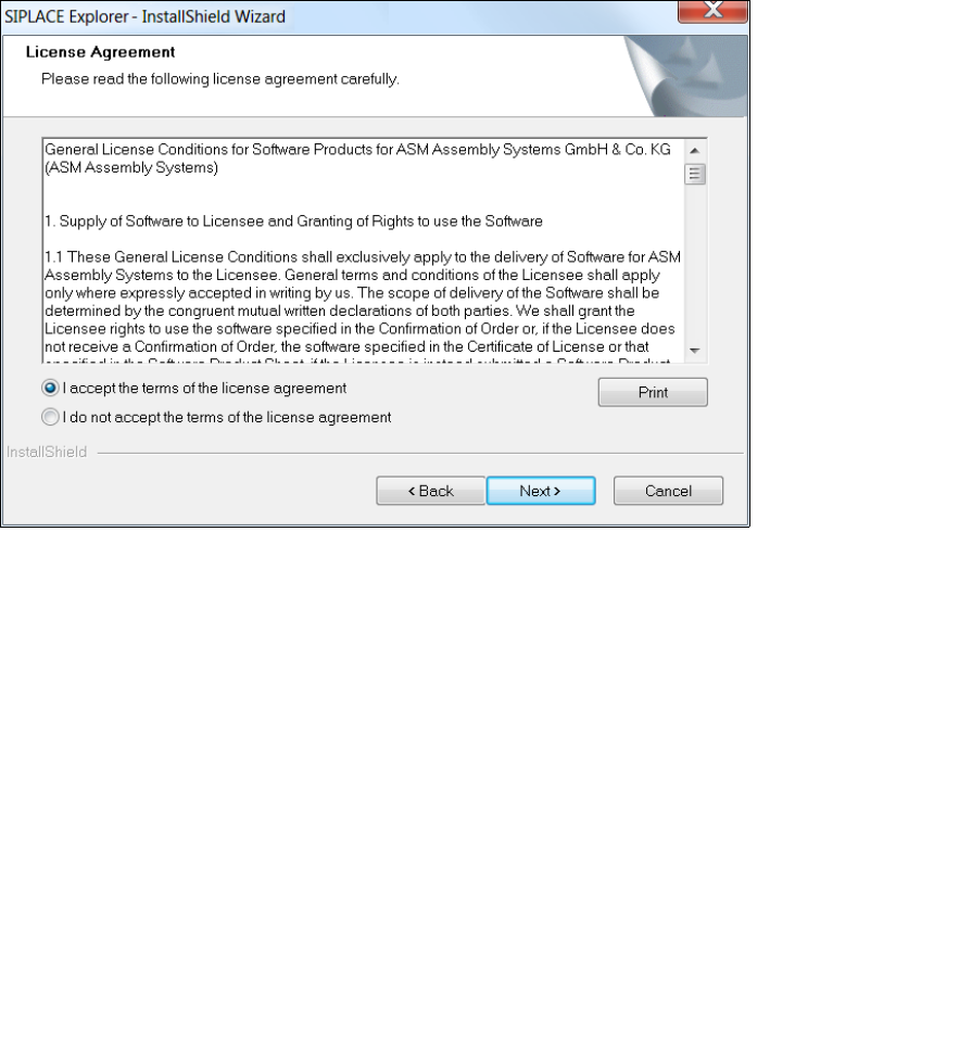 Fig. 3 - 3 SIPLACE Explorer setup - license agreement