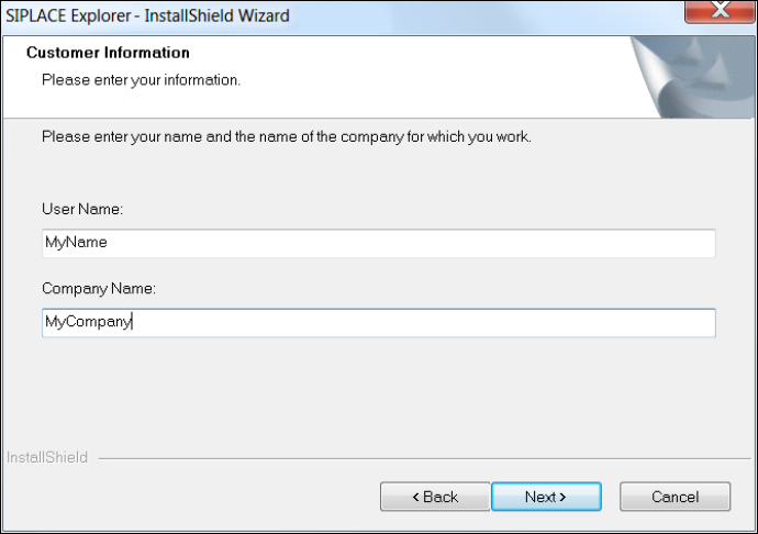 Fig. 3 - 4 SIPLACE Explorer setup - specify customer information