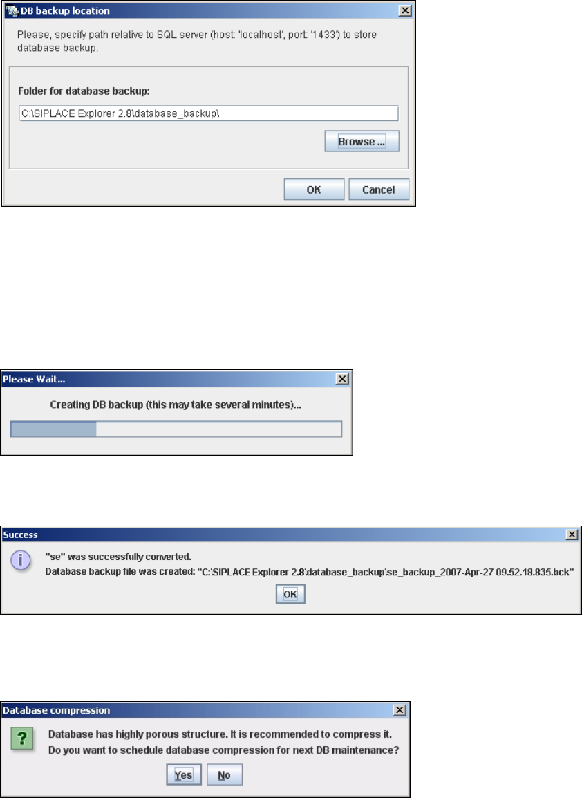 Confirm your entries with OK. The DB backup location dialog box will open