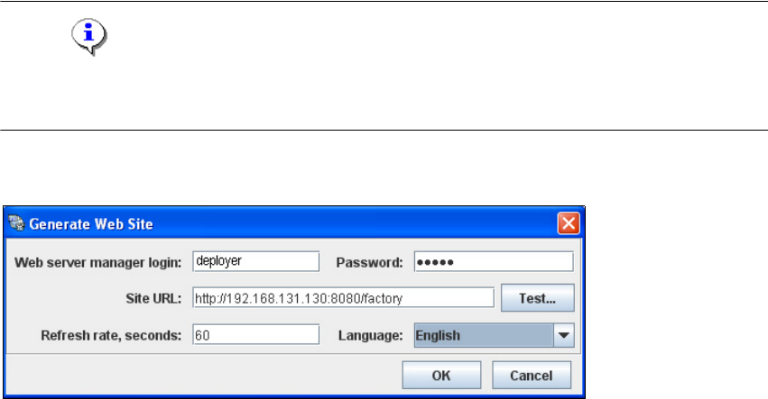 To generate a factory website, you require web server manager privileges (Tomcat website
