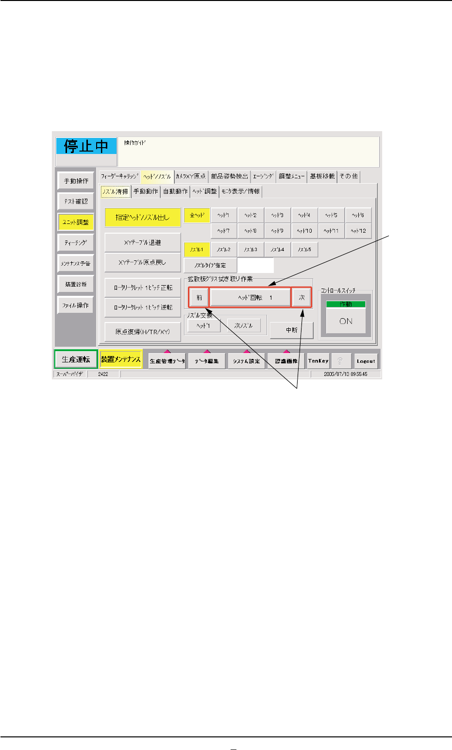 [次]ボタンを押し、グリスを拭き取るヘッド No. を設定します。