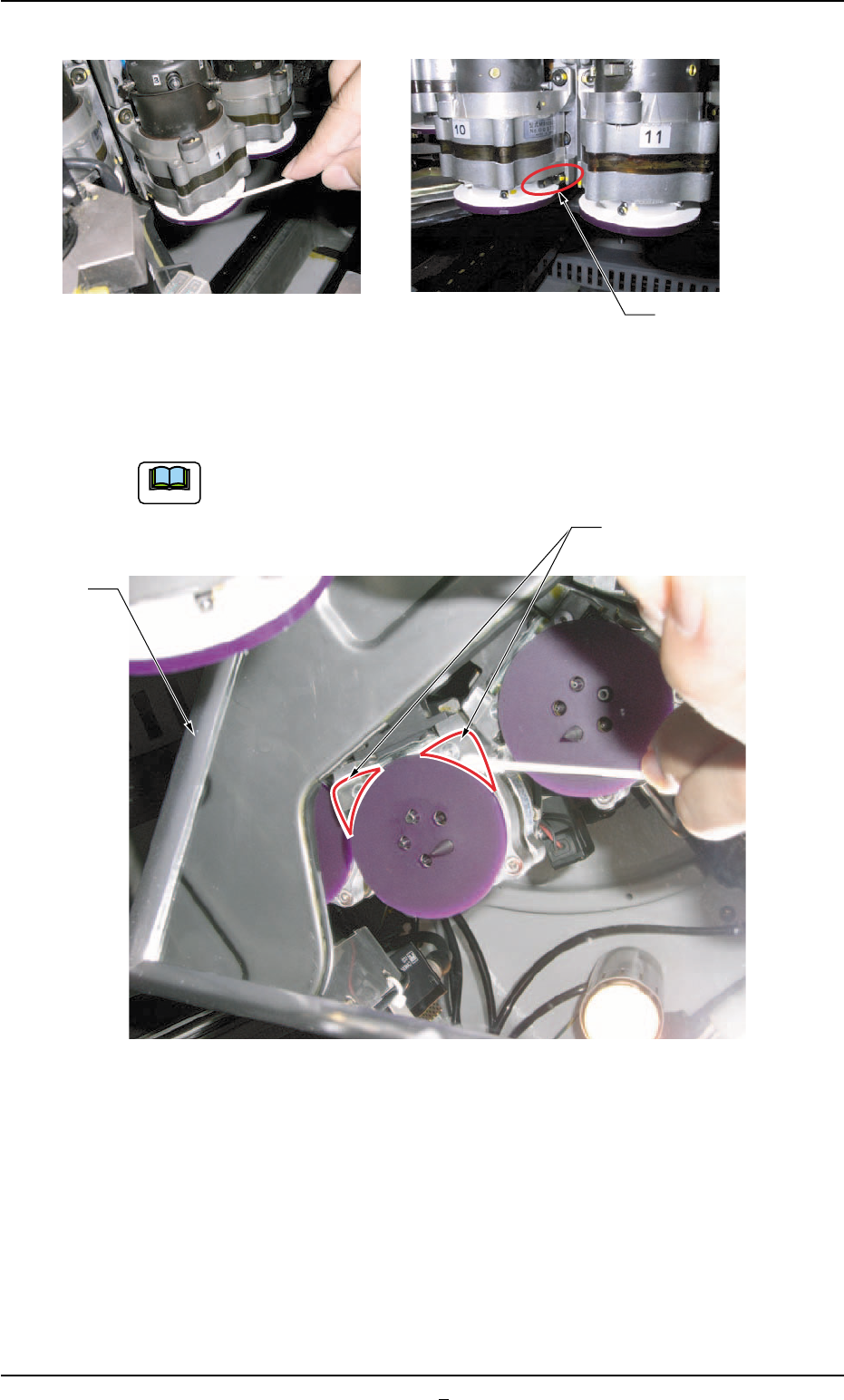 1 .4.5 1 .4.5 1 .4.5 1 .4.5 1 .4.5 拡散板上面の清掃 拡散板上面の清掃 拡散板上面の清掃 拡散板上面の清掃 拡散板上面の清掃 拡散板の上面に付着しているグリスを拭き取ります。 ( 1 ) グリスを拭き取るヘッドを選択し、 全てのノズルを取り外します。 ノズルの取外し方法については、 “1 .4.4 吸着ノズルの取外しお よび取付け”を参照してください。 Fig. 4A68- 1 (2) * 1 * 1 …