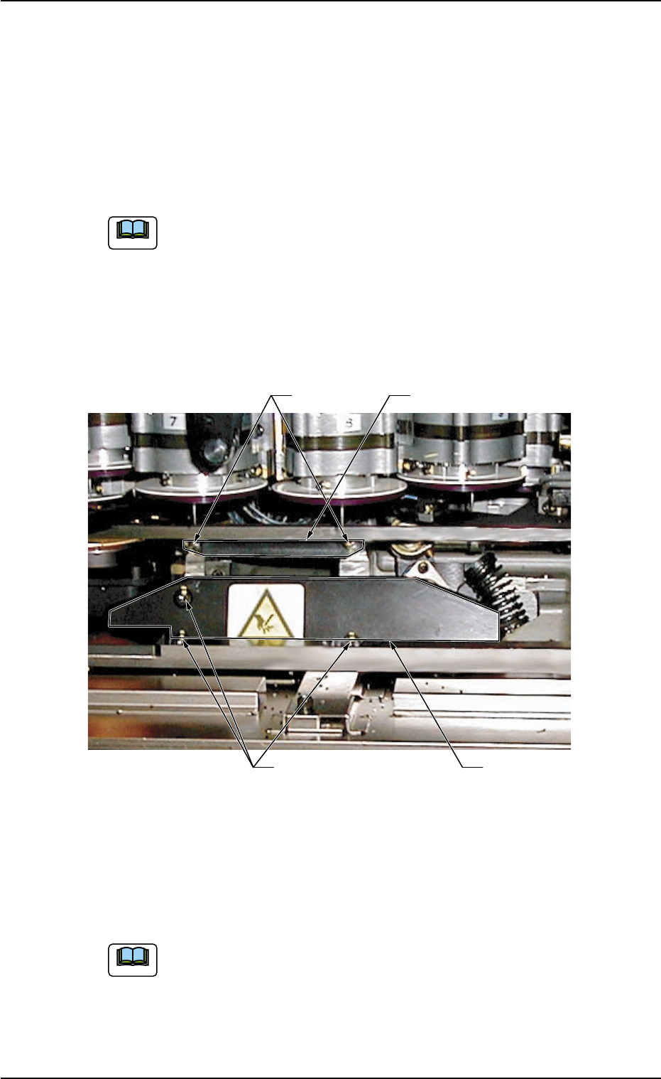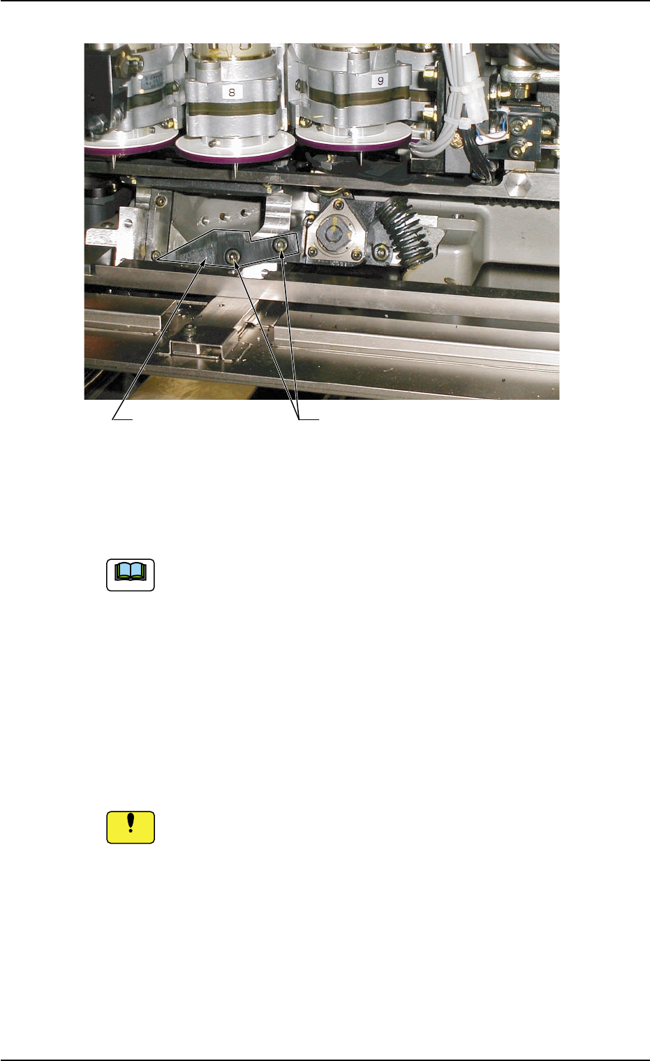 (7) 新しい下刃押さえ板を取付け、ボルト B(M5 ×12)で固定してくだ