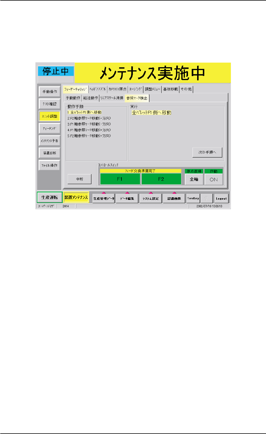 フィーダキャリッジ 2 が F1 側へ移動し、以下の画面
