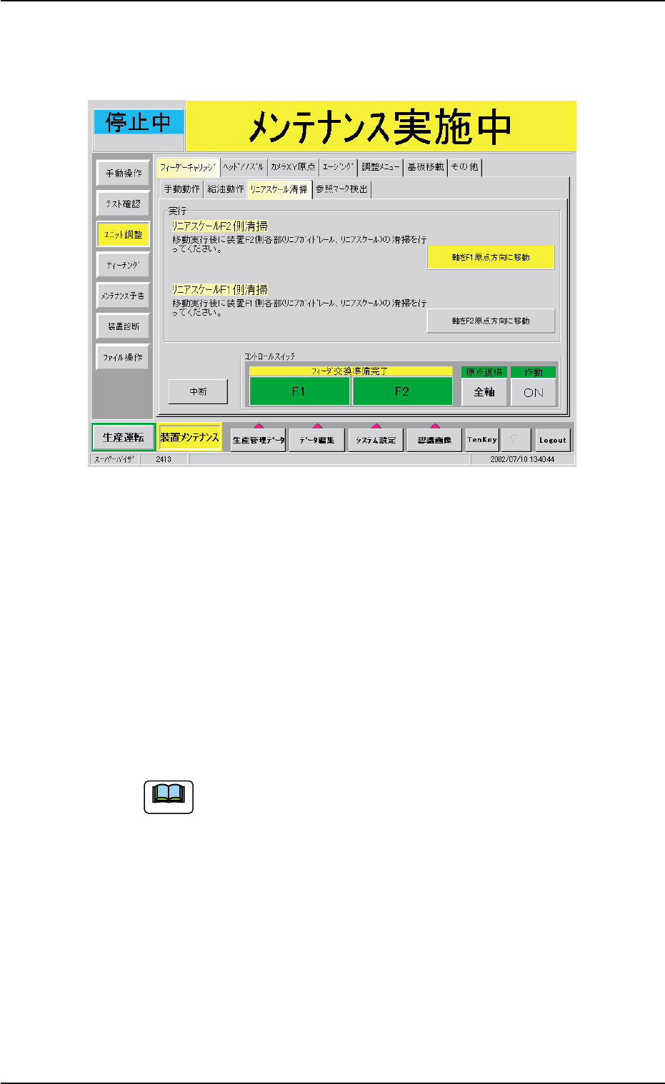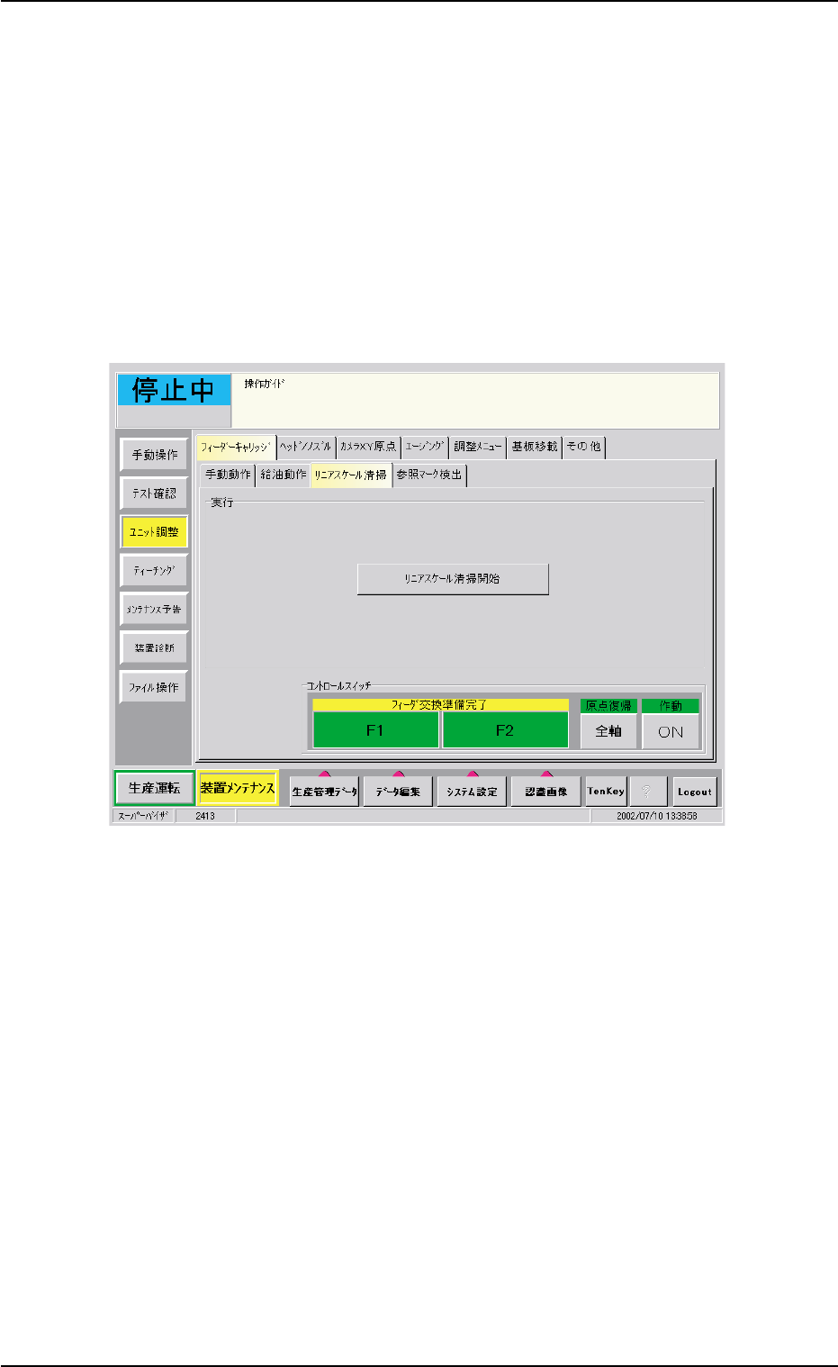 (2)“リニアスケール清掃”タブシートで[リニアスケール清掃]ボタン