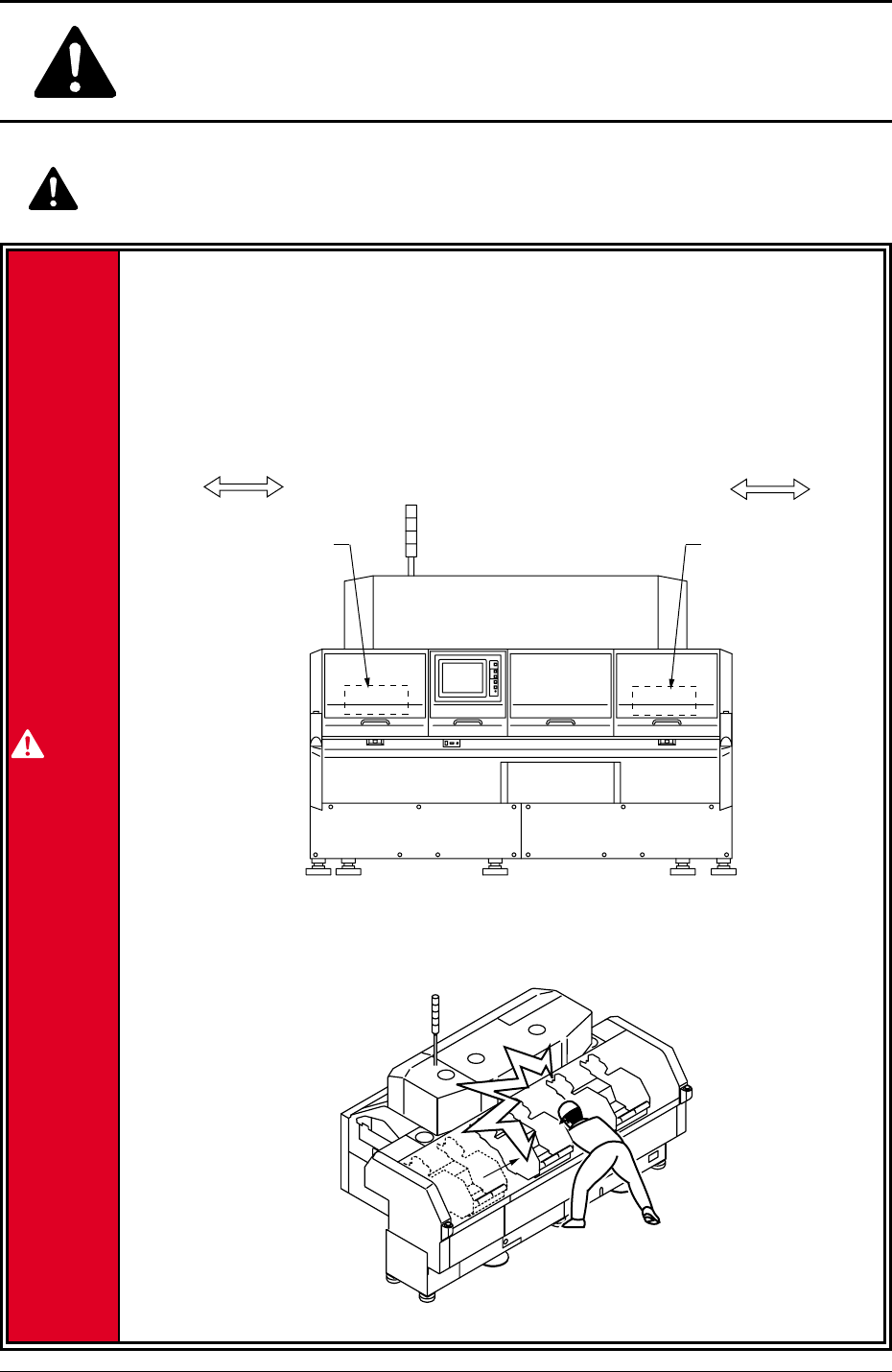 • フィーダキャリッジに人や物が接触すると重大な事故となります。