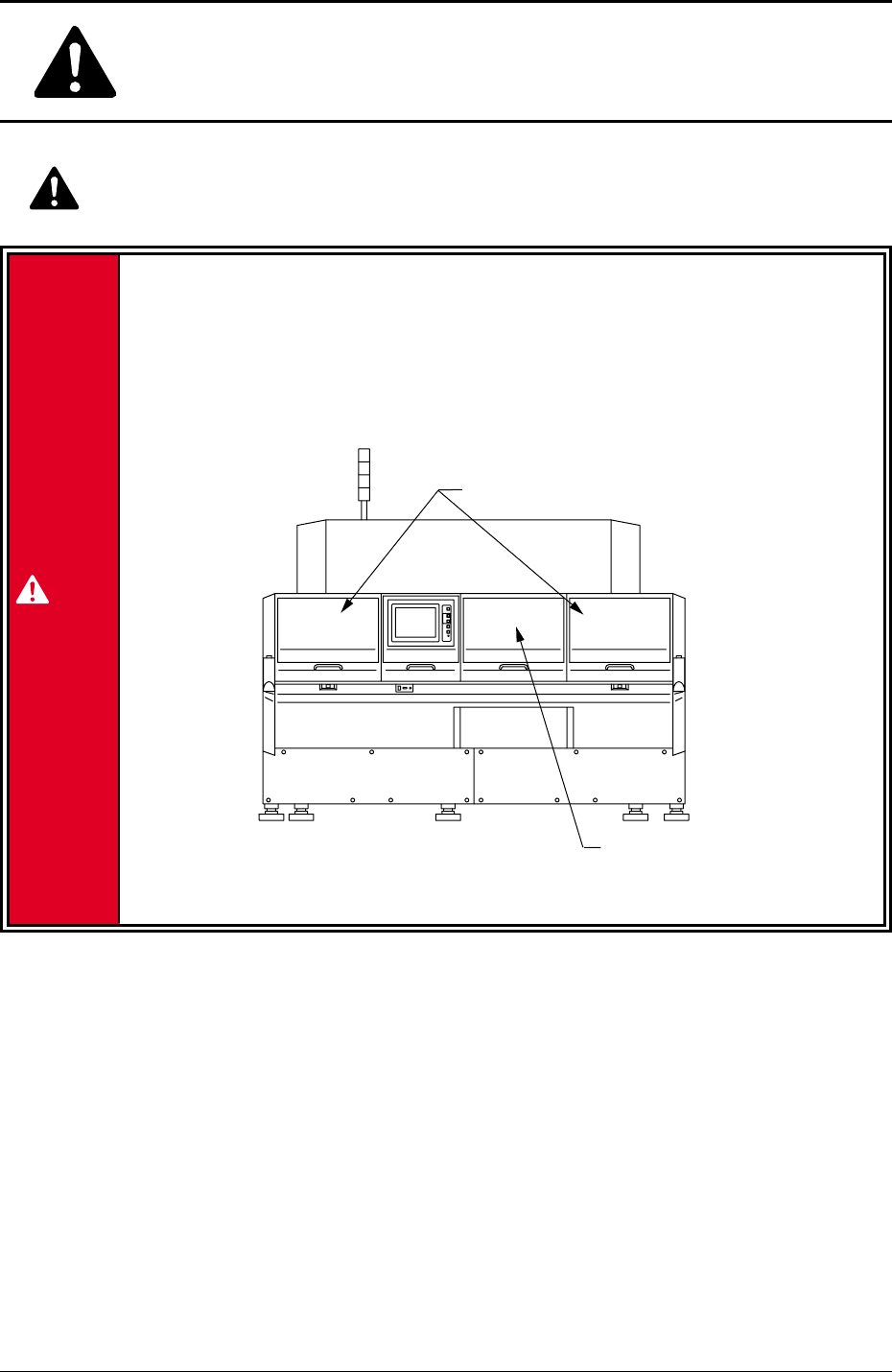 フィーダキャリッジに人や物が接触すると、重大な事故となります。