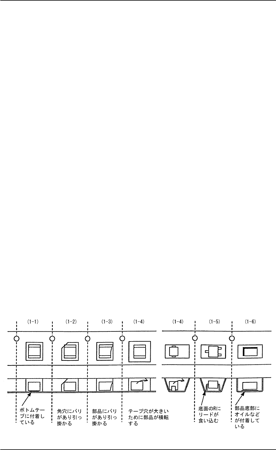 (1-1) 部品がボトムテープに付着している。