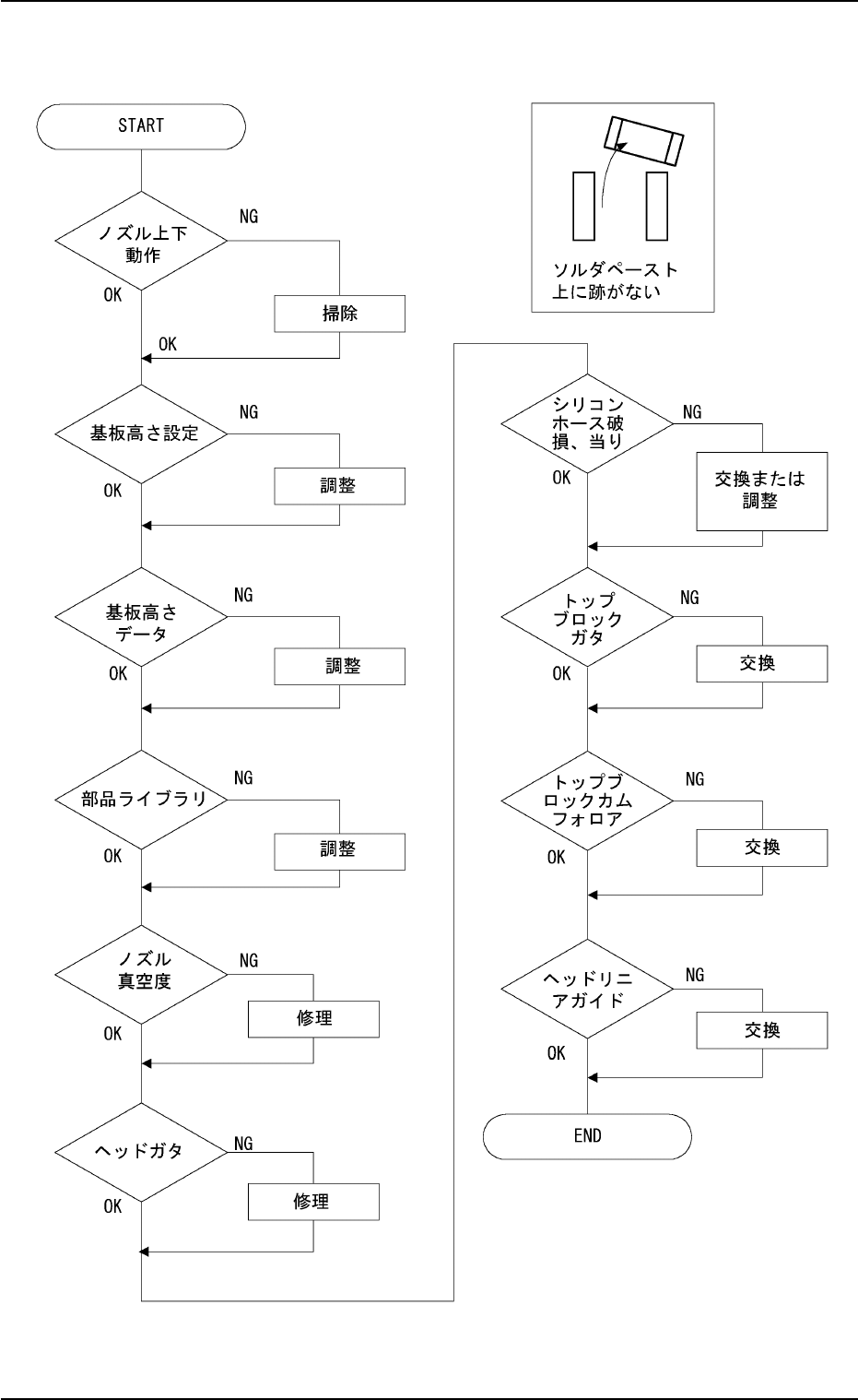 (2) 基板ランド上の所定位置に部品を装着した跡がない場合