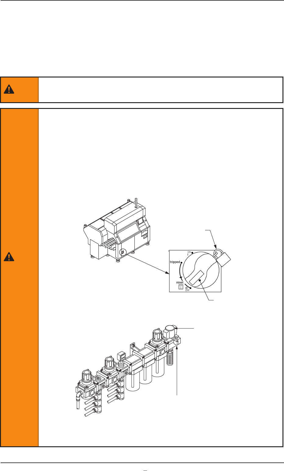 • メンテナンスする前に、必ず電源ブレーカおよびエア源に南京錠をかけてくだ