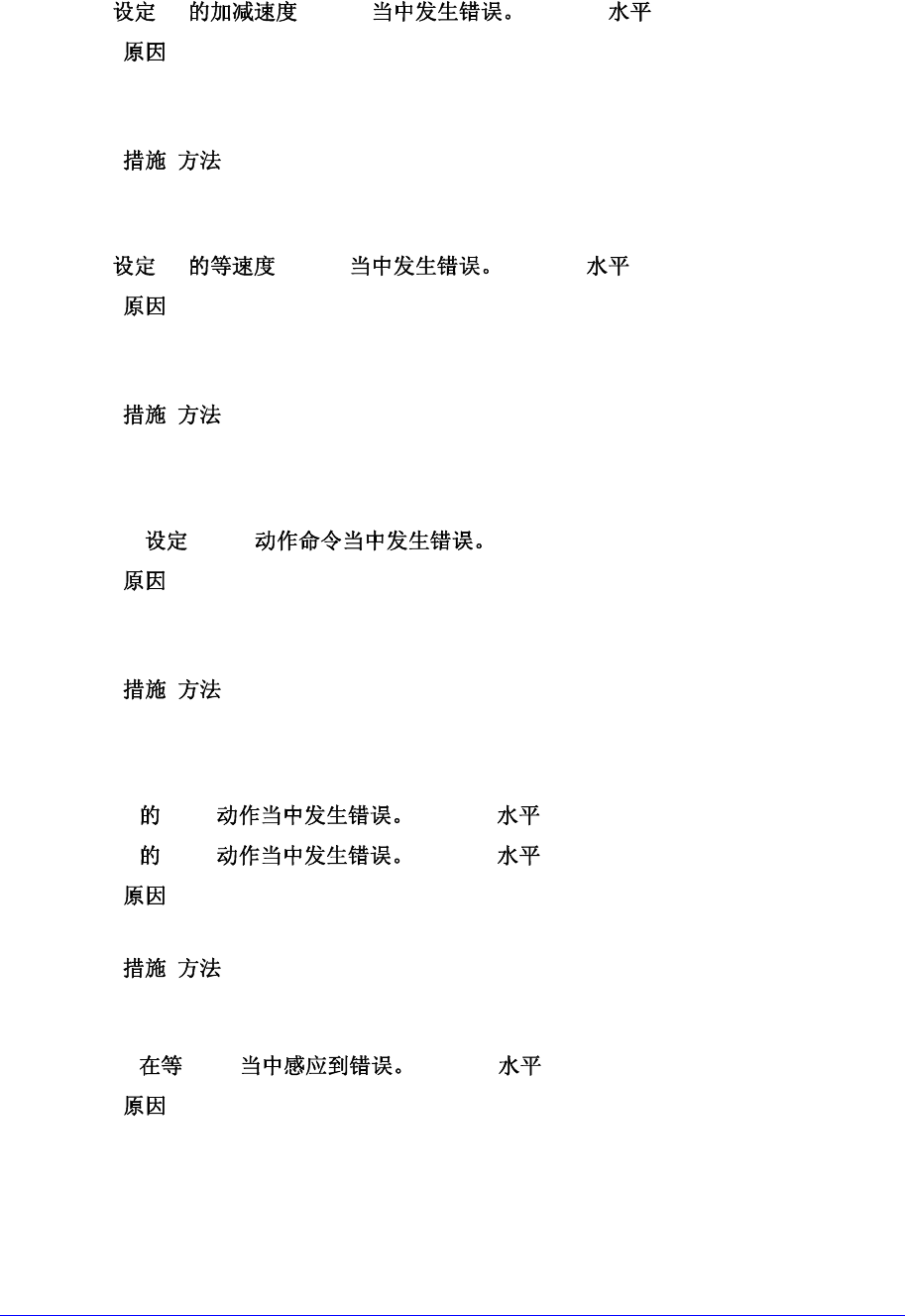 1-105 1.2.15. Mo ti on 控制有关错误 [$c000~$cff f] $c000 $A Pro fil e [EMER ] [ ] 有 关 Factory Setup 的速度 Profile 的数据有错误的情况。 由于 S/ W 的异常状况,发生错误的情况。 [ ] 正常关闭设备电源过 5 秒后再连接电源重新启动。 $c001 $A Pr ofile [EMER ] [ ] 有关 Factory Se…
