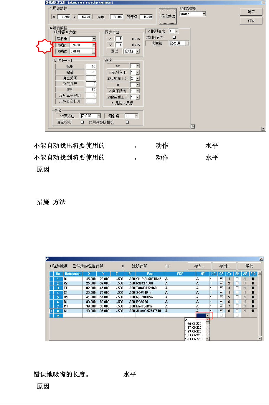 相应的磁头上实际不存在吸嘴,但ANC菜单的对话框中设置为相应磁头上已贴