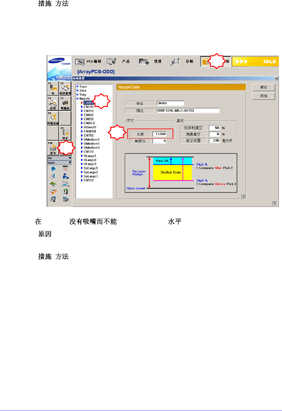 相应的磁头上实际不存在吸嘴,但ANC菜单的对话框中设置为相应磁头上已贴