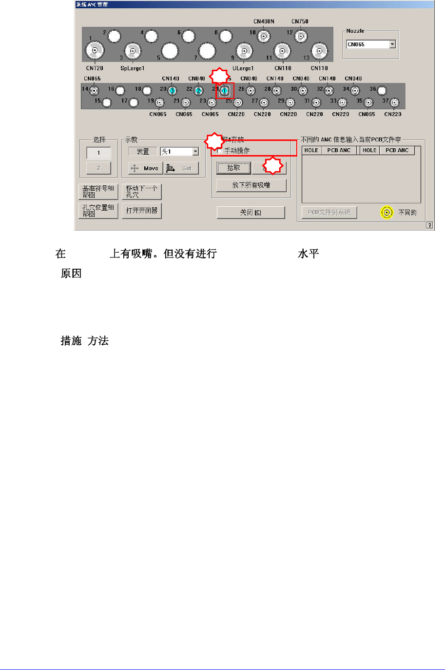 装吸嘴,那么确认‘No real motion(Manual)’后选择有错误发生磁头序号标识的