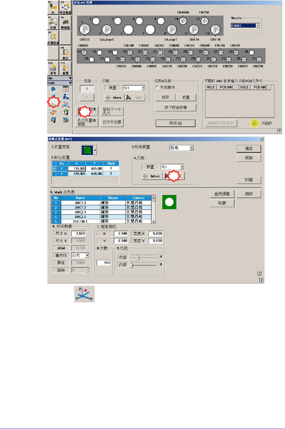 是否选择为“Fid Cam”。还有点击<Move>按钮移动到相应ANC槽位置确认槽的