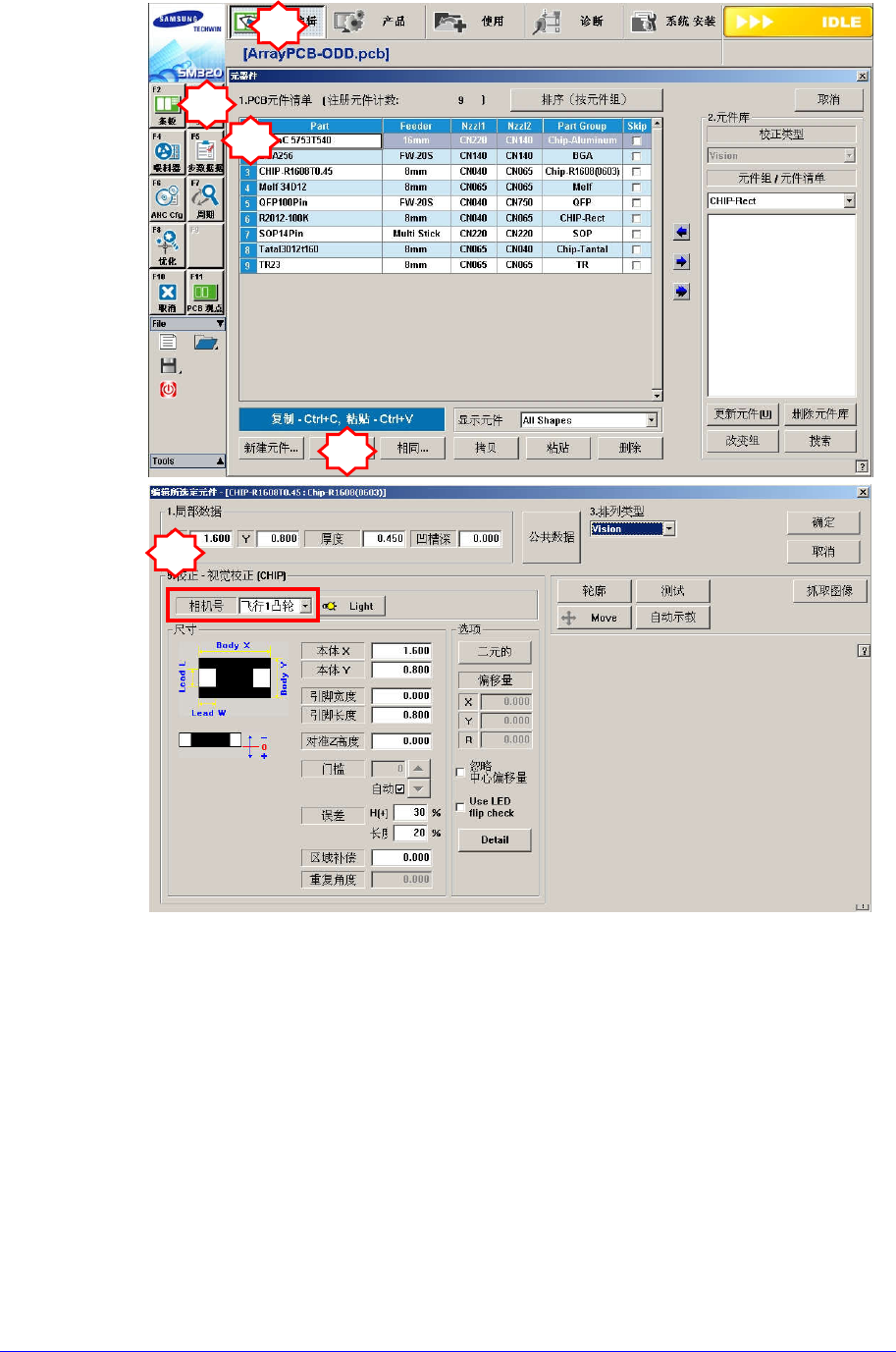 在PCB Edit 菜单的Part确认相应部件的 ‘Camera No.’ 是否准确设定。